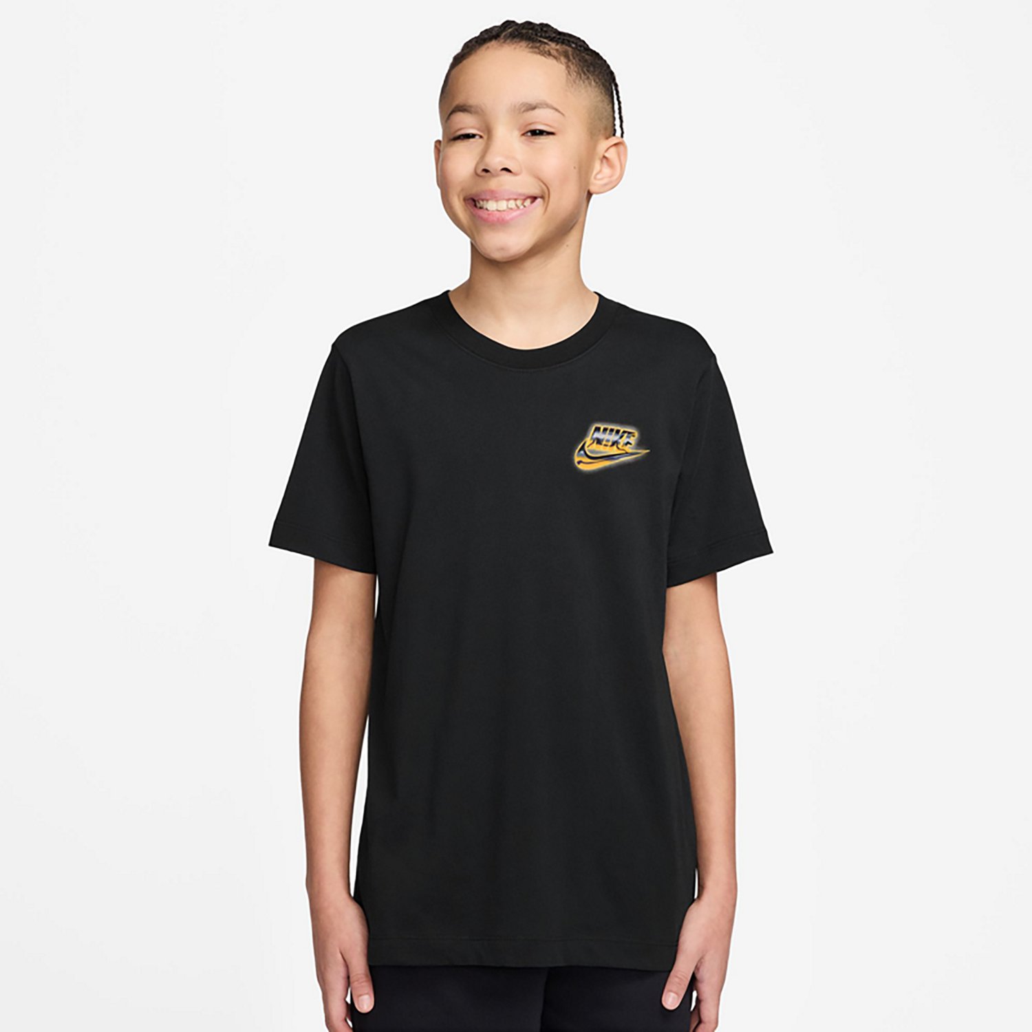 Have your little one looking their best when they wear the Nike Boys' Nike Sportswear Medal Short Sleeve T-shirt. It is made of 100% cotton. The short sleeves keep them cool, and its crew neckline creates a casual look. The Nike Swoosh logo on the front and back adds an authentic touch.