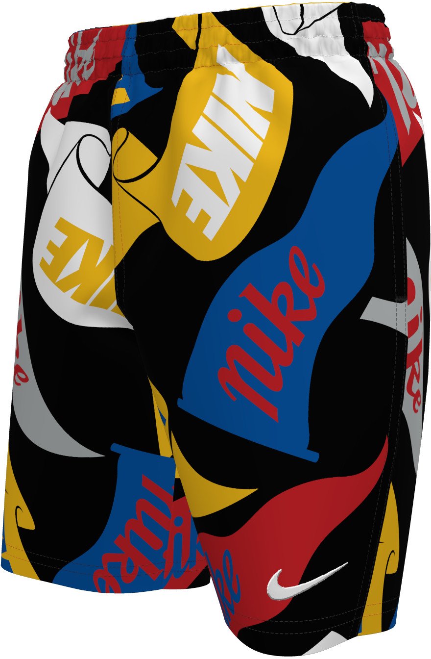 Splash around in the Nike Boys' Ocean Merge Volley Swim Shorts 7 in. Their body is made of 100% polyester. The lining is made of 50% recycled polyester and 50% polyester, and their left leg displays the Swoosh logo. The 7-inch inseam provides ample coverage.