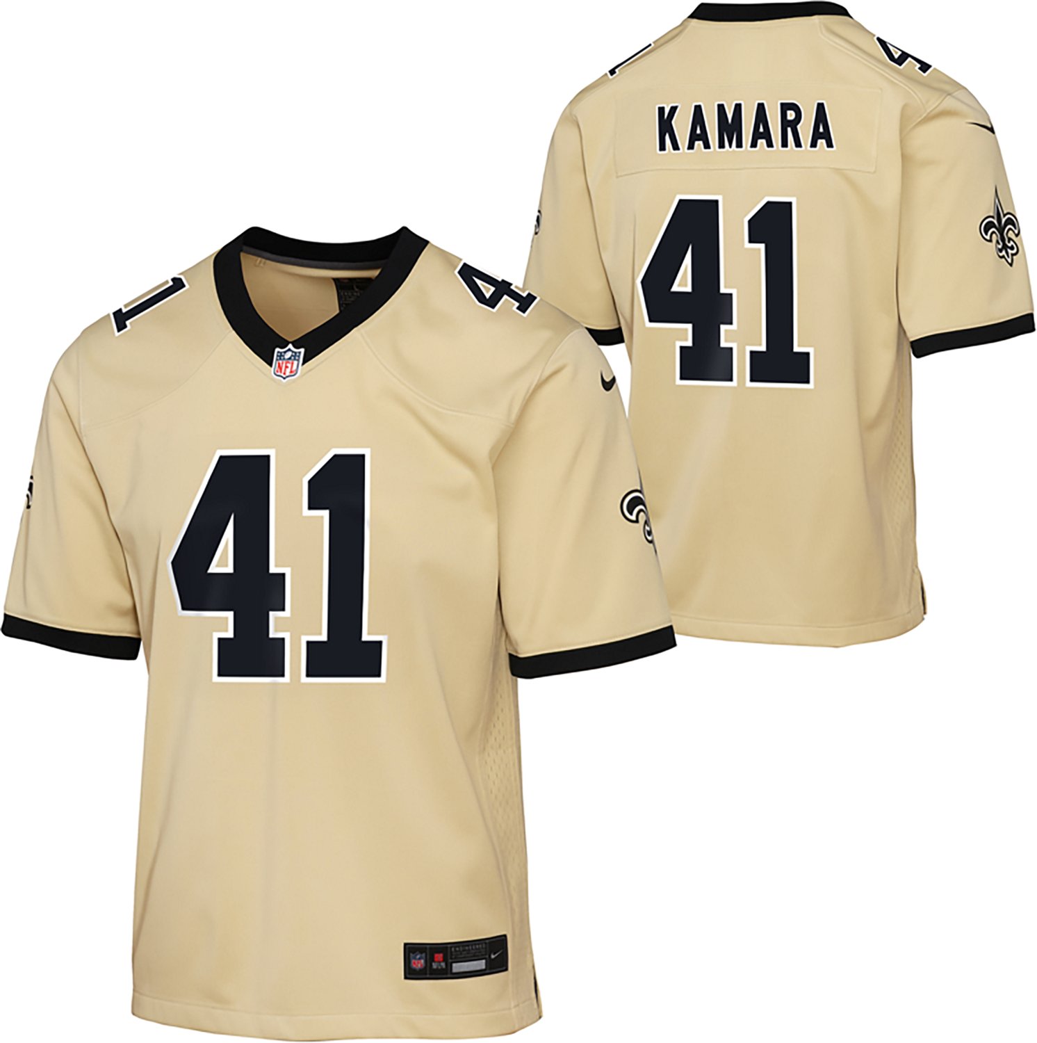 You can celebrate each and every victory with fellow fans when you wear the Nike Boys' Saints Alvin Kamara ALT Game Player Name & Number Jersey. This jersey is made of 100% polyester with mesh side panels to help keep you cool and comfortable, and its team and player screen prints make all the difference on gameday.