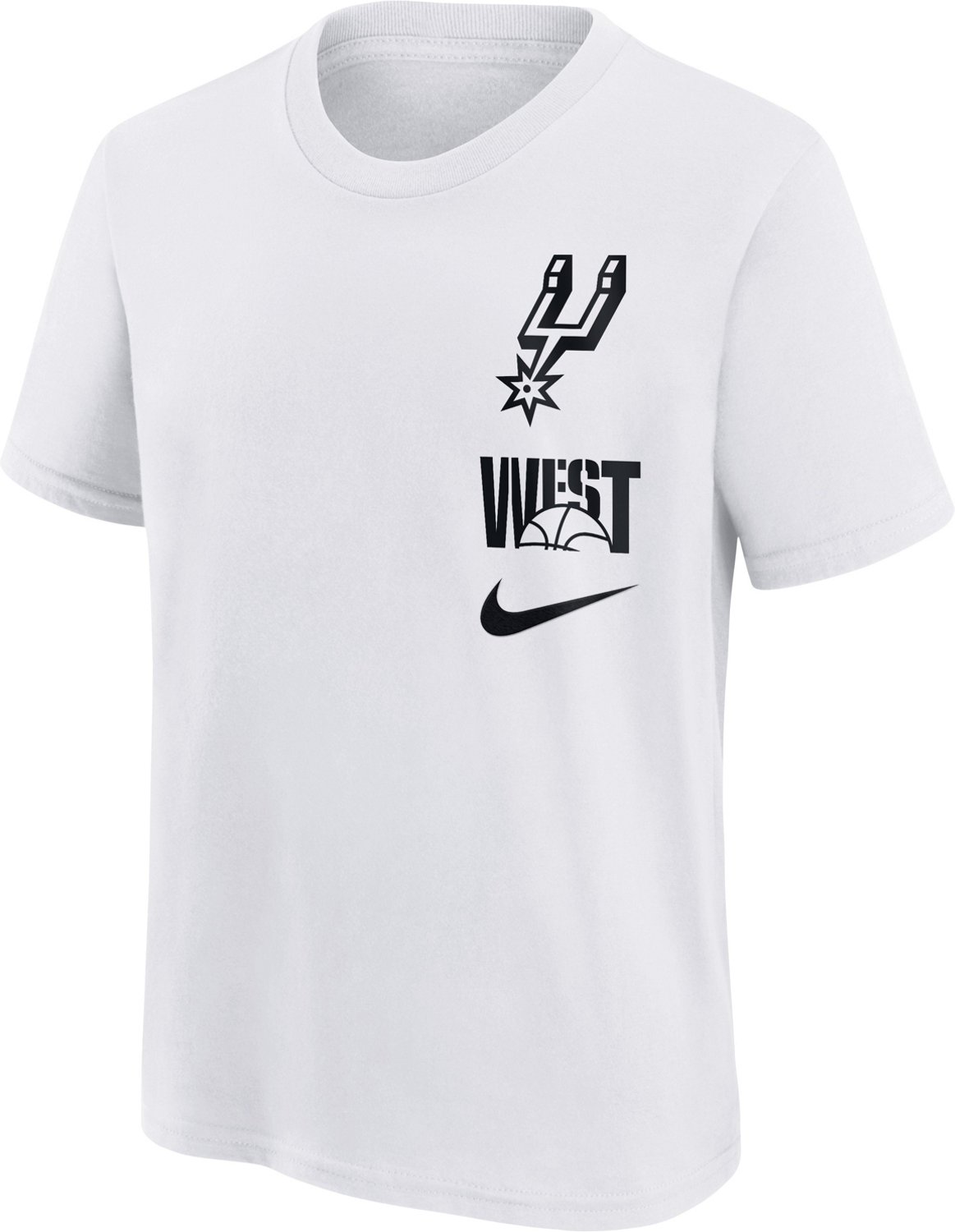 Go for the 3-point shot with the Nike Boys' San Antonio Spurs Essential VS Block Graphic T-shirt. The cotton jersey fabric provides a comfortable feel, while the graphic design shows off your Spurs pride.