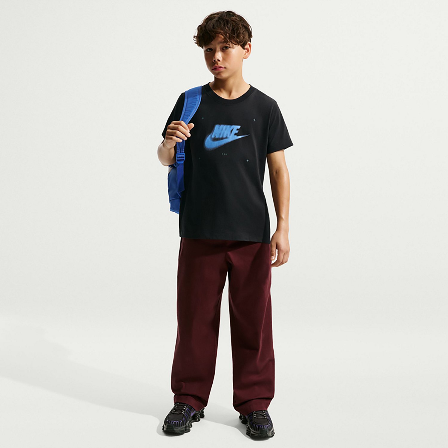 Features and Benefits Made of 100% cotton for comfortable wear Short sleeves Crew neck Graphic design adds a touch of style Specifications Neckline: Crew Neck Product Type: Shirts Sleeve length: Short Sleeve Age Group: Kids' Activity: Casual Style: T-Shirts Material: 100% cotton Gender: Boys' Size Range: Boys' (8 - 20) What's in the Box Nike Boys' Sportswear Brand Read T-shirt