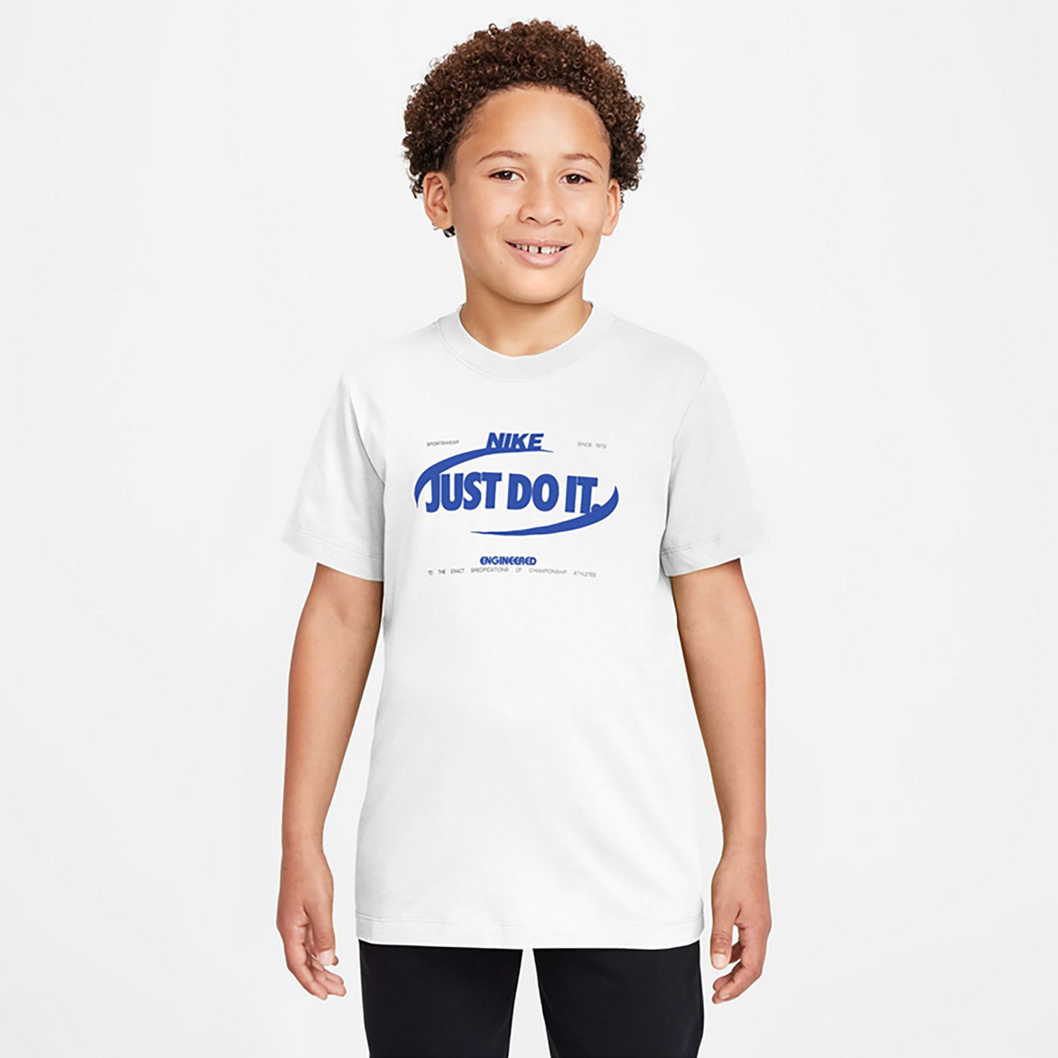 Kids will love playing while wearing the Nike Boys' Sportswear Brandmark Just Do It T-shirt. This classic-fit tee is made of 100% lightweight cotton to feel soft and comfortable against the skin, and the chest graphic features the words "Just Do It" to make his brand loyalty easy to see.