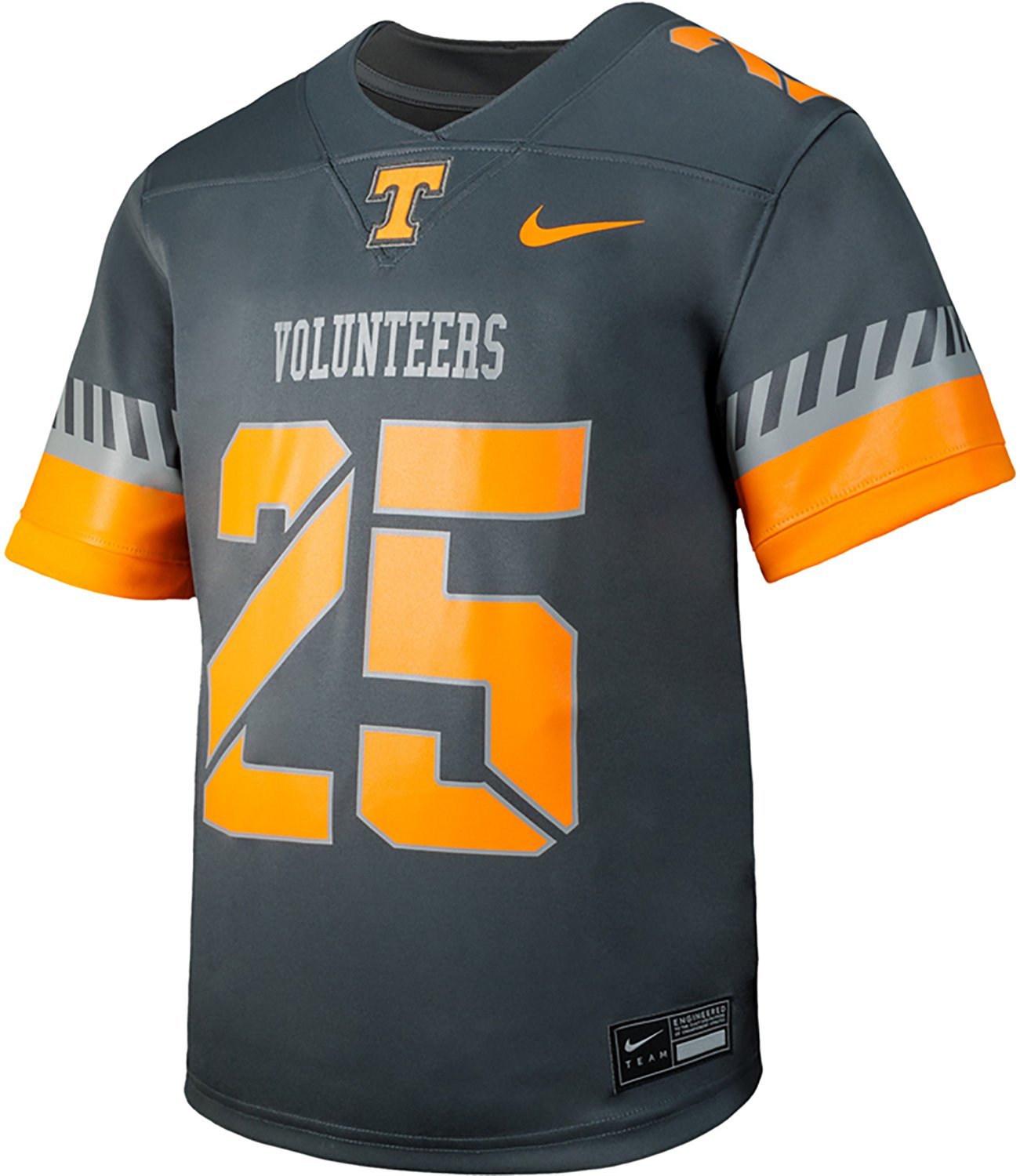Help get other fans excited for the upcoming game by wearing the Nike Boys' Tennessee Alt Replica Football Jersey. This jersey offers a realistic look and is made of polyester for comfort. Its team theme helps you stand out from the crowd.