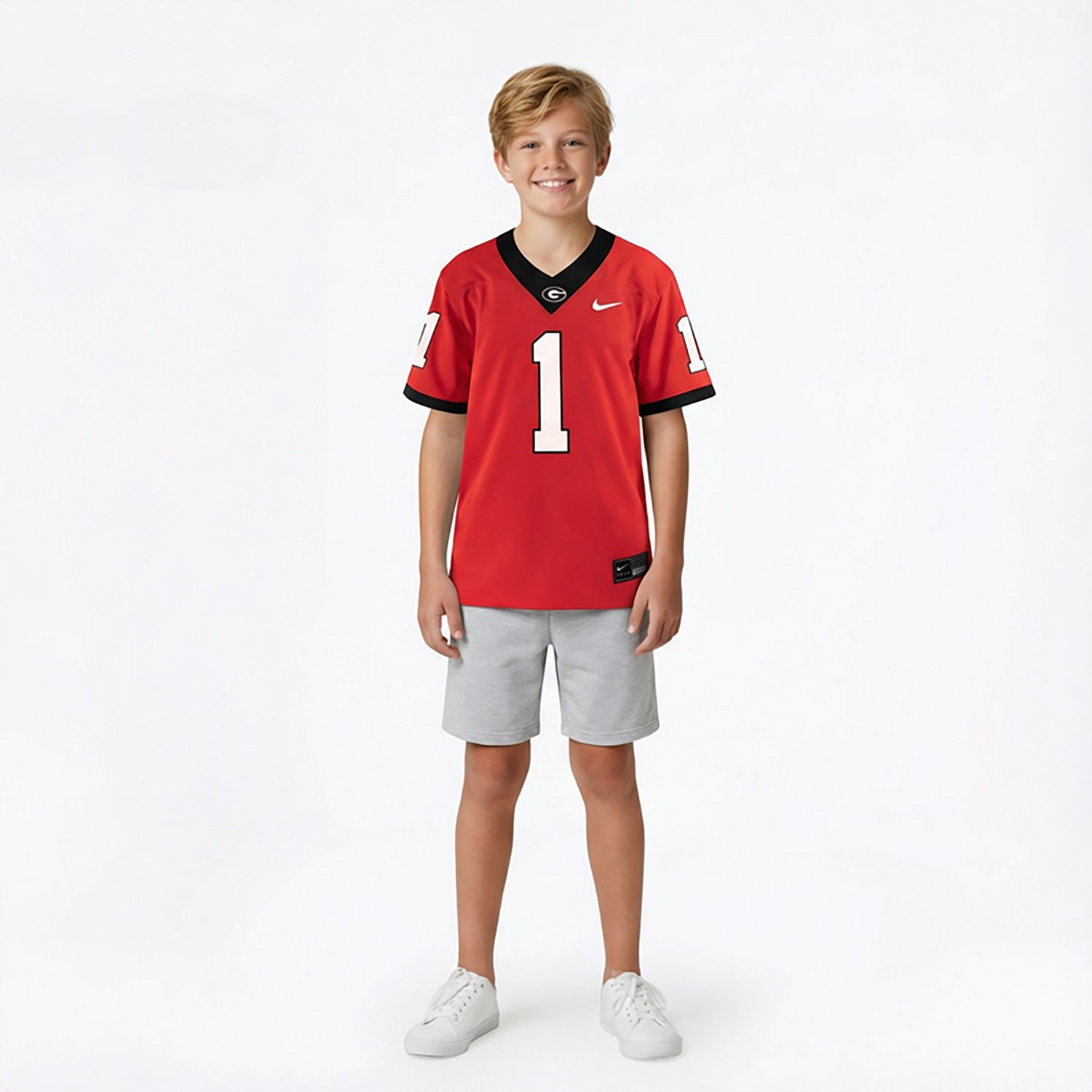 Get ready for game day with the Nike Boys' University of Georgia Untouchable Football Jersey. The polyester material provides a comfortable feel, while the screenprinted graphics show off your Bulldogs pride.
