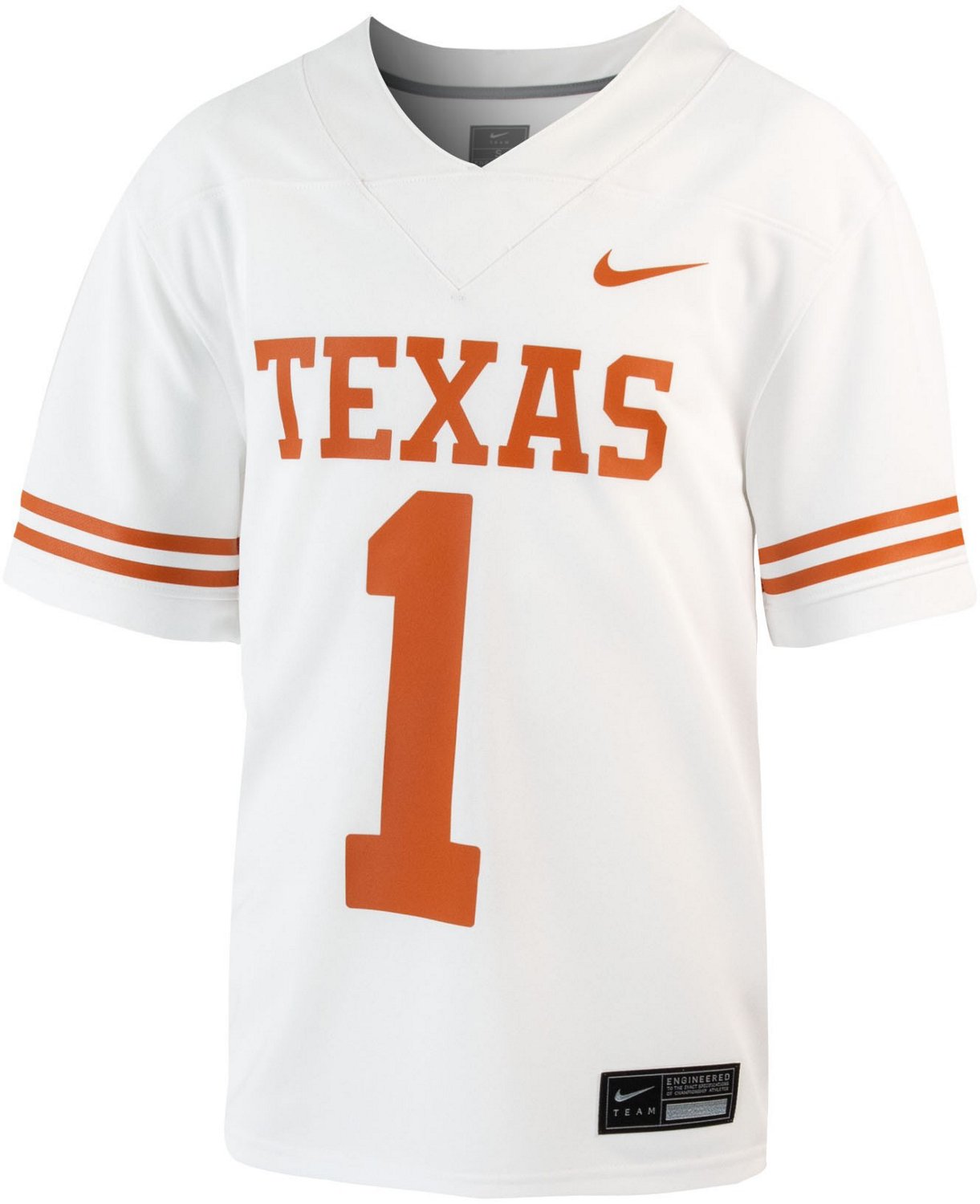 You can pass and throw just like the Longhorns when you sport the Nike Boys' University of Texas Replica Football Jersey. The stitched team design highlights your fandom in a unique way, and a polyester jersey provides softness and durability.