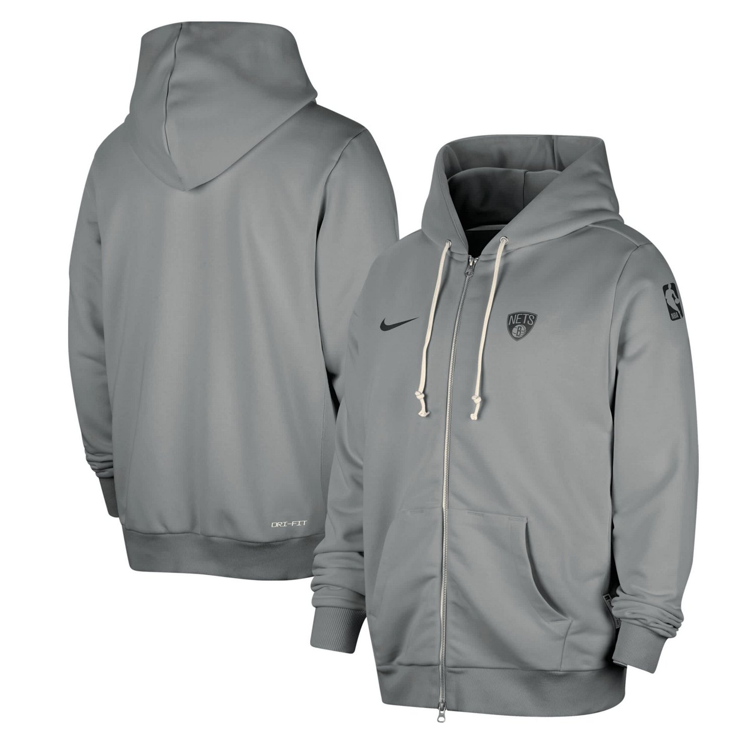 Showcase your Brooklyn Nets pride in style with this Authentic Standard Issue Full-Zip Hoodie This midweight jacket is made with Nike's signature Dri-FIT technology ensuring you stay dry and comfortable whether you're courtside or out and about Two front pockets and a hood with drawstrings offer added warmth and convenience making it perfect for moderate temperatures