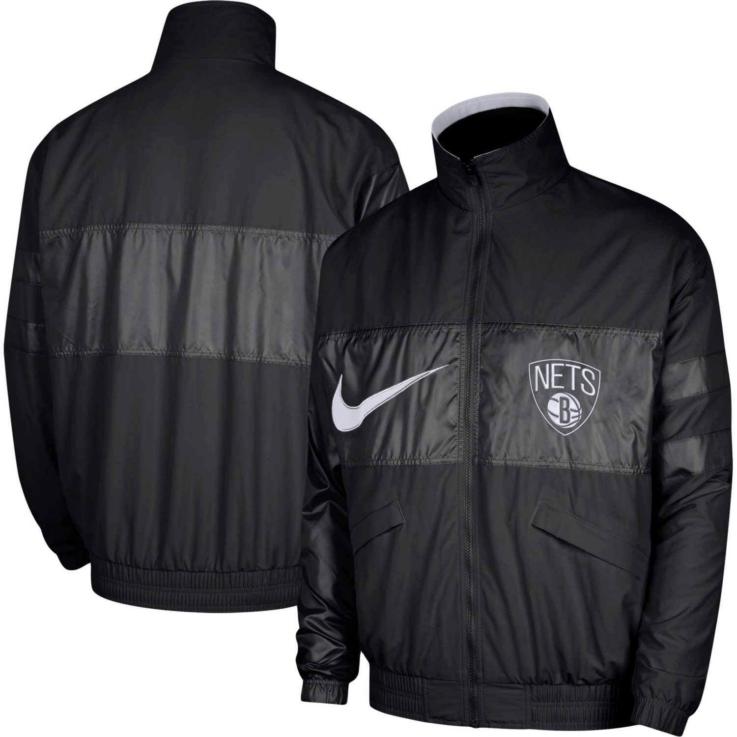 Stand out on game day by sporting this Nike Courtside Versus Capsule full-zip It features a bold Brooklyn Nets design with noticeable team graphics for a spirited layer A mock neck offers a bit of extra coverage in case temperatures drop