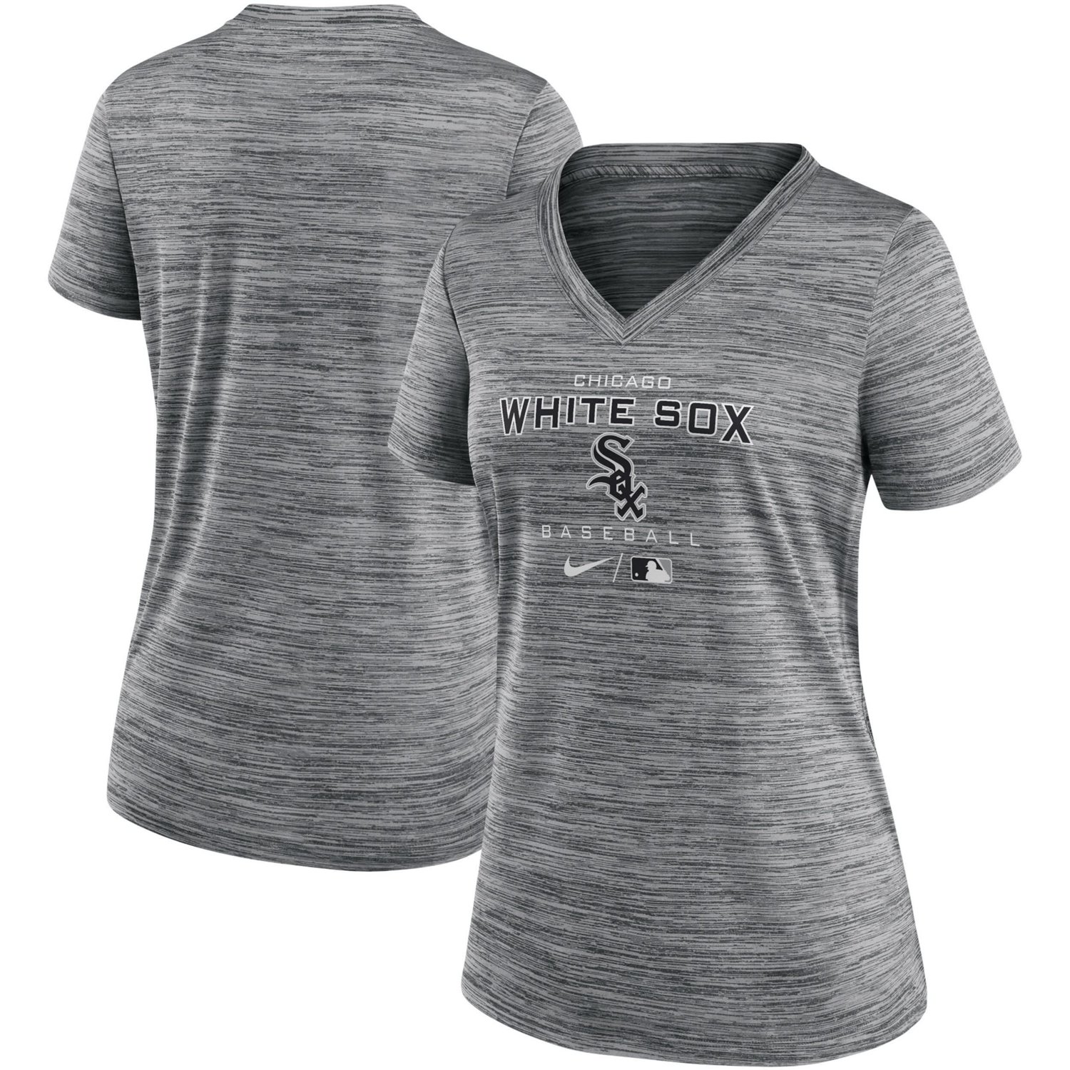 The Nike Anthracite Chicago White Sox Authentic Collection Velocity Performance V-Neck T-shirt is the perfect way to show your support for the Chicago White Sox Made from breathable polyester this shirt features Dri-FIT technology to keep you cool and comfortable all game long The space-dye design adds a touch of style while the Chicago White Sox logo on the chest shows your team pride Whether you're cheering from the stands or just hanging out at home this shirt is a must-have for any White Sox fan
