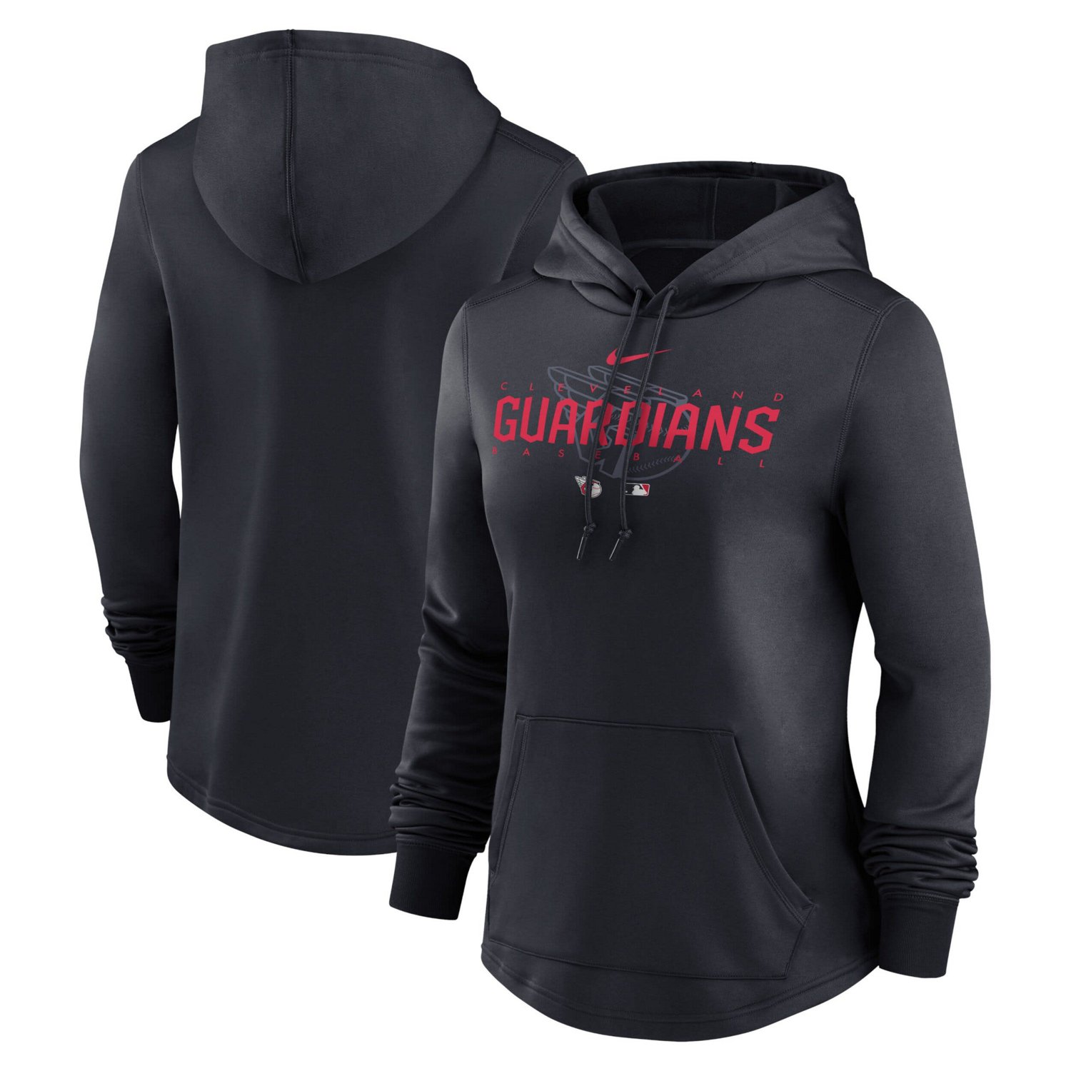 The Women's Nike Navy Cleveland Guardians Authentic Collection Pregame Performance Pullover Hoodie is the perfect way to show your support for the Cleveland Guardians Made with Nike Therma fabric this hoodie will keep you warm and comfortable even on the coldest game days The fleece lining and flatlock stitching provide added comfort while the front pouch pocket is perfect for storing your essentials The screen print graphics and scuba hood with drawstring complete the look making this hoodie a must-have for any Cleveland Guardians fan