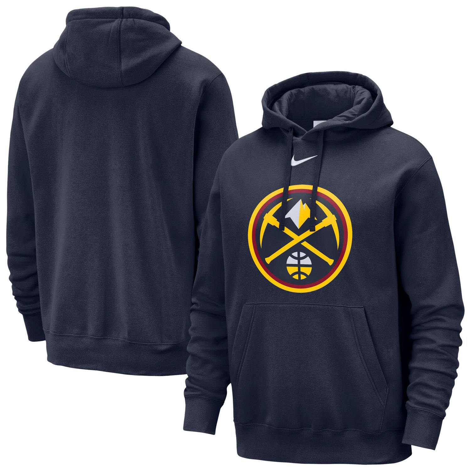 Stay warm when you cheer on the Denver Nuggets with this Essential Logo Club Pullover Hoodie from Nike The brushed-back fleece provides a soft comfortable feel perfect for layering on cooler days The printed team graphics and embroidered Swoosh on the chest let you share how much you love the Denver Nuggets