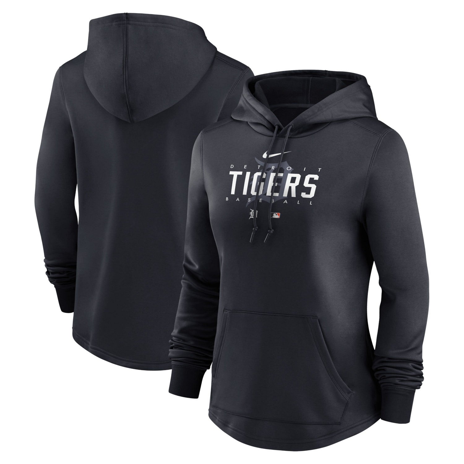 The Women's Nike Navy Detroit Tigers Authentic Collection Pregame Performance Pullover Hoodie is the perfect way to show your support for the Detroit Tigers Made with Nike Therma fabric this hoodie will keep you warm and comfortable even on the coldest game days The fleece lining and flatlock stitching provide added comfort while the front pouch pocket is perfect for storing your essentials The screen print graphics and scuba hood with drawstring complete the look making this hoodie a must-have for any Detroit Tigers fan Crafted with Dri-FIT technology it wicks away sweat to keep you dry and comfortable The polyester body and polyester-spandex rib material offer a comfortable fit and feel while the midweight design makes it ideal for moderate temperatures Whether you're cheering on the Tigers at the stadium or relaxing at home this hoodie is the perfect way to show your unwavering support