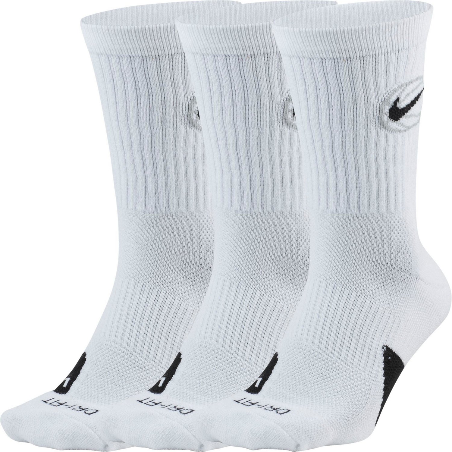 Stay comfortable while staying active in the Nike Everyday Basketball Crew Socks 3 Pack. These socks feature Dri-FIT technology that wicks sweat to keep your feet dry and cozy. The underfoot cushioning provides all-day comfort, while the ribbed arch bands offer a supportive feel.