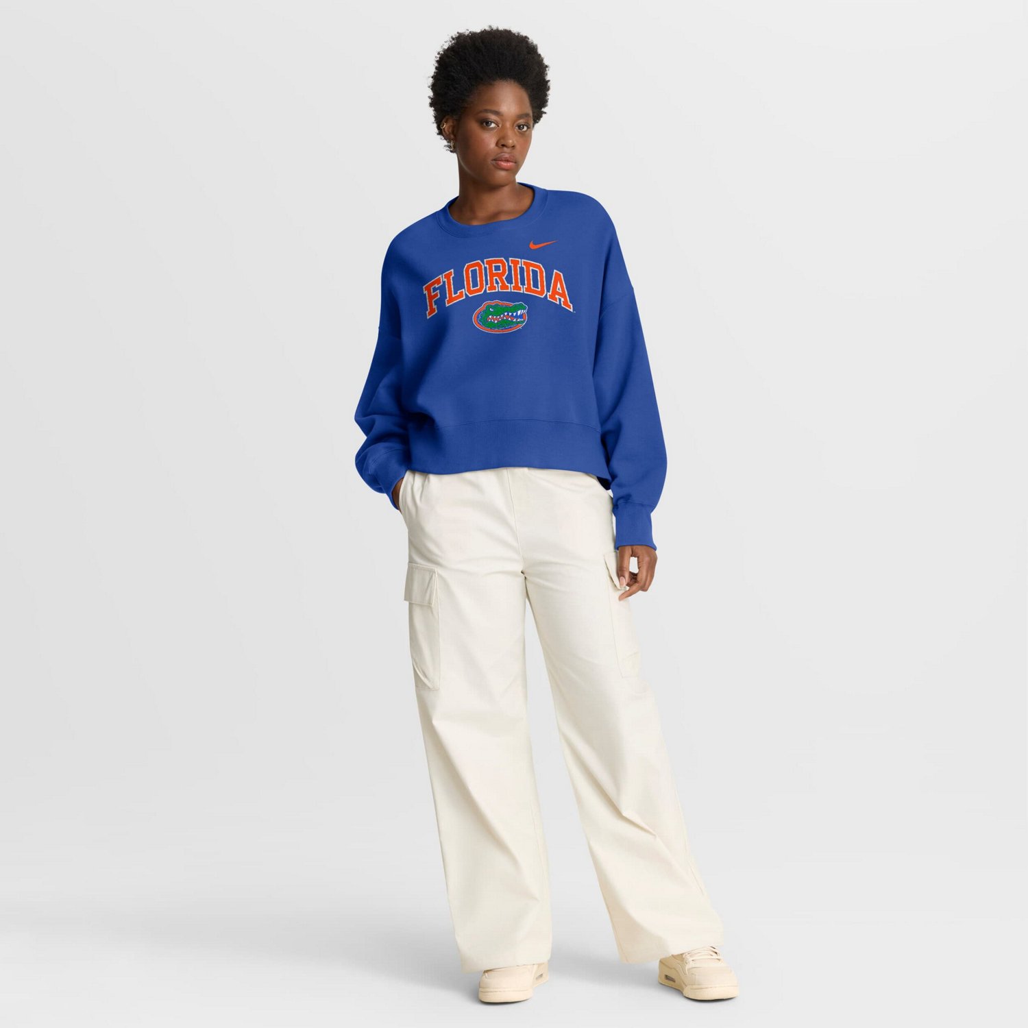 Stay comfy in fashionable Florida Gators apparel with this Oversized Phoenix Arch Sweatshirt by Nike It features dropped shoulders and scrunched sleeves for a trendy look and relaxed fit Fleece fabric and brushed French terry lining provide exceptional warmth and a luxuriously soft feel making this Florida Gators sweatshirt perfect for cooler game days or casual outings