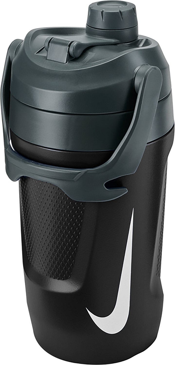 Stay hydrated while hiking with the Nike Fuel Chug Refresh 40 oz Jug Water Bottle. This large water bottle-style jug holds 40 ounces of water and is insulated to keep it cold through all your adventures. The twist-off cap makes it easy to sip while on the move. Carry it with you or hang it from a fence or your backpack using the strong handle.