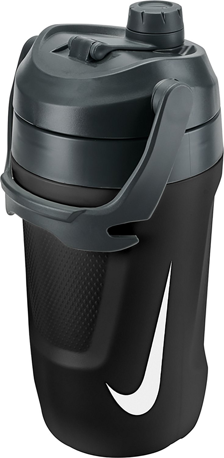 Stay hydrated while hiking with the Nike Fuel Chug Refresh 64 oz Jug Water Bottle. This large water bottle-style jug holds 64 ounces of water and is insulated to keep it cold through all your adventures. The twist-off cap makes it easy to sip while on the move. Carry it with you or hang it from a fence or your backpack using the strong handle.