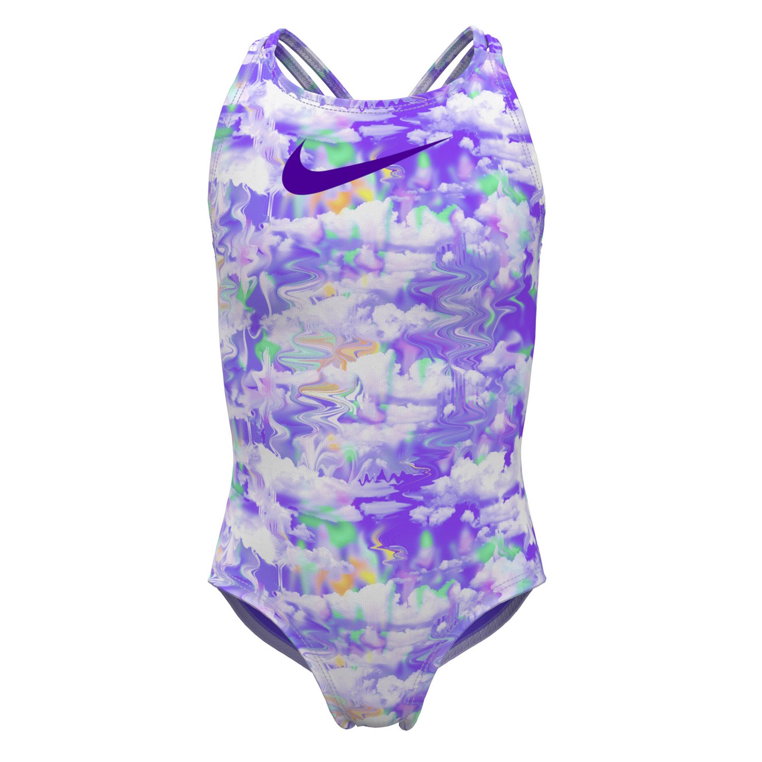 Show off your sense of style at the beach with the Nike Girls' Dream Clouds Spiderback 1-Piece Swimsuit. The nylon and spandex material provide comfort, while the polyester lining offers a soft feel. The crossback design allows for easy movement, and the Swoosh logo delivers a stylish touch.