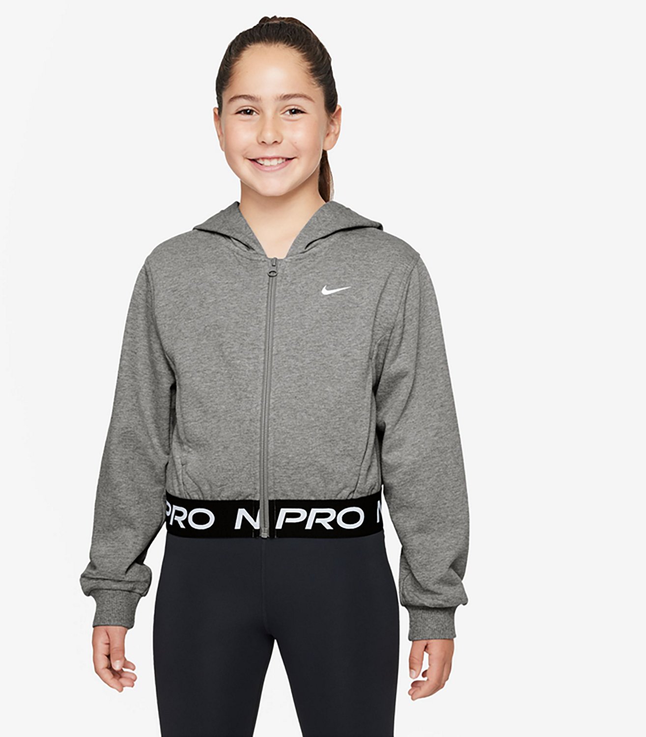 Reach for the Nike Girls' Dri-FIT Fleece Hoodie to look and feel great throughout the day. This hoodie is made of 62% cotton and 38% polyester with Dri-FIT fabric technology to help keep you cool, dry and comfortable, and the pockets make it easy to keep important items with you. The elastic waistband provides a snug fit.