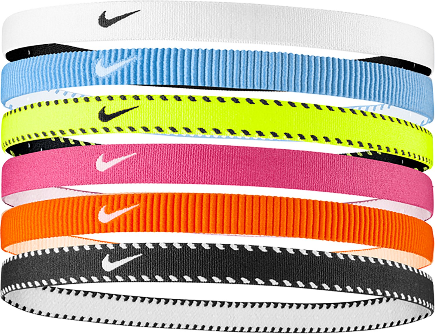 Keep your hair out of your eyes while active with this Nike Girls' Flex Classic Headbands 6-Pack. The headbands are designed with a silicone pattern that helps keep hair out of your eyes, and they provide a secure fit for multiple wearing options.