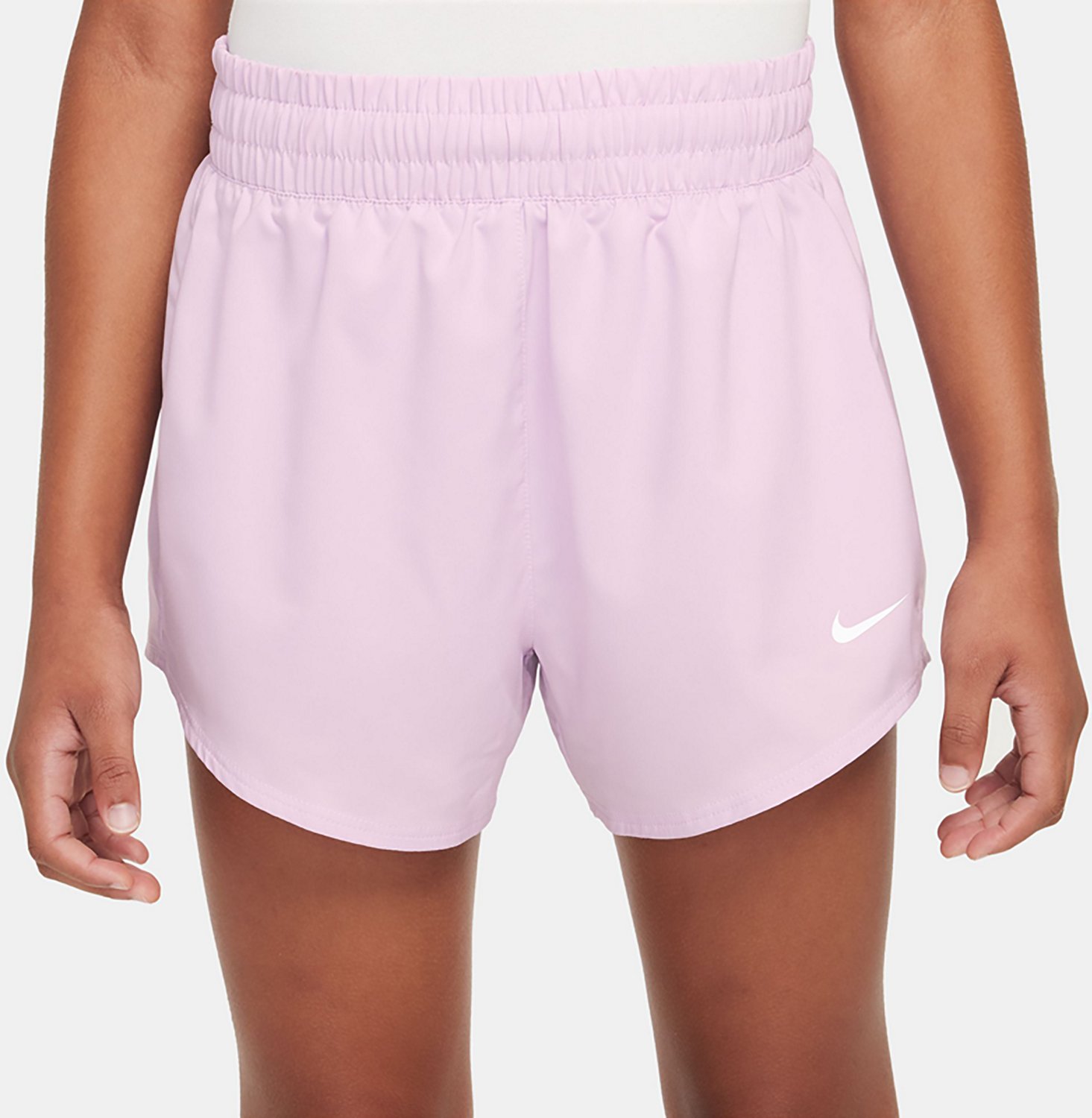 Take on your day in the Nike Girls' One Dri-FIT 2-in-1 Shorts 3 in. Their Dri-FIT technology moves sweat away from your skin for quicker evaporation. The body is made of 100% polyester, and their tight/gusset lining is made of 88% polyester and 12% spandex. The stretchy elastic waistband with internal drawcord helps you dial in the perfect fit.