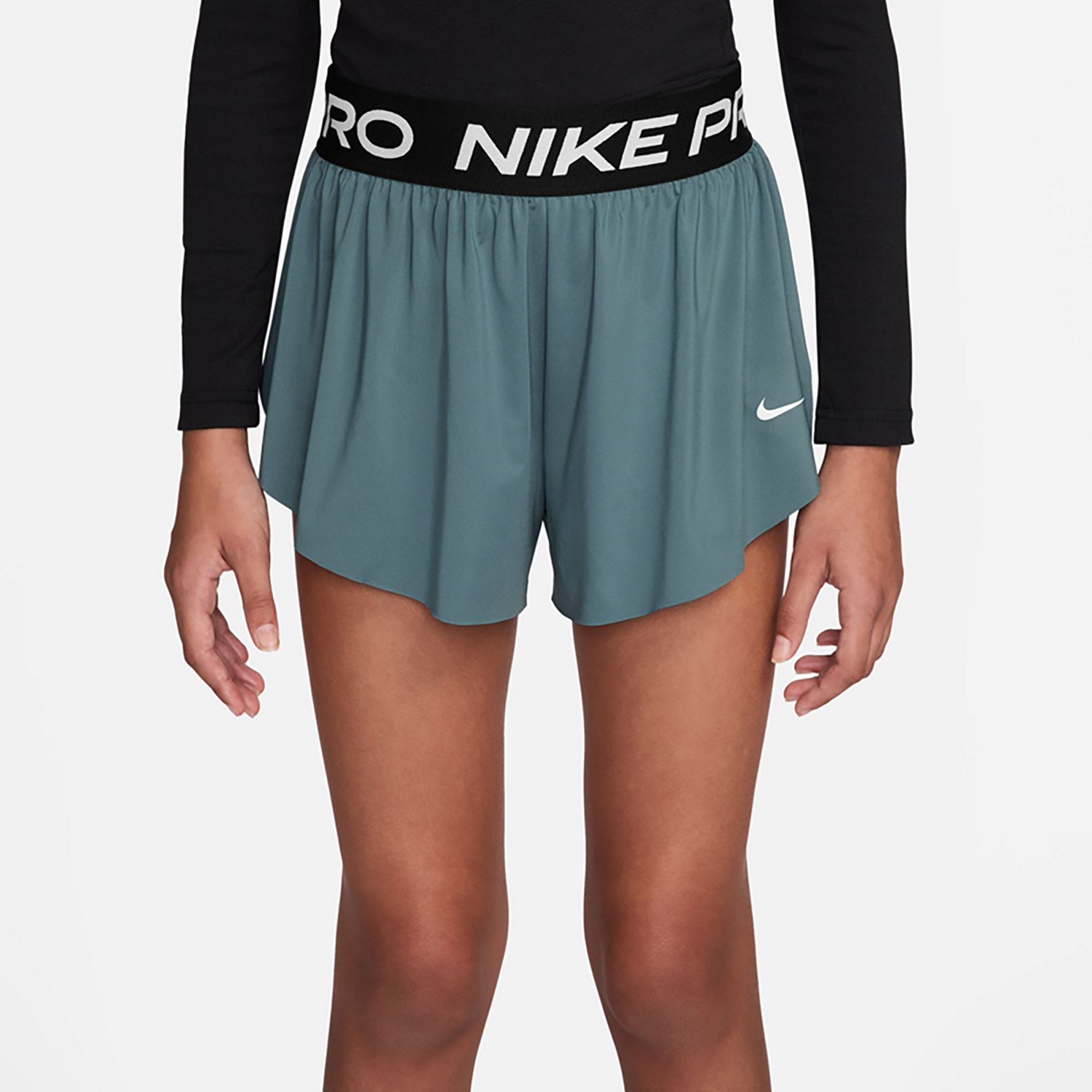 You can excel in athletic activity when wearing the Nike Girls' Pro Dri-FIT 2 in 1 Knit Shorts 3 in. These combination shorts and tights offer a polyester blend that helps keep wearers comfortable, and Dri-FIT fabric technology wicks away sweat and other moisture so you can stay dry and cool.