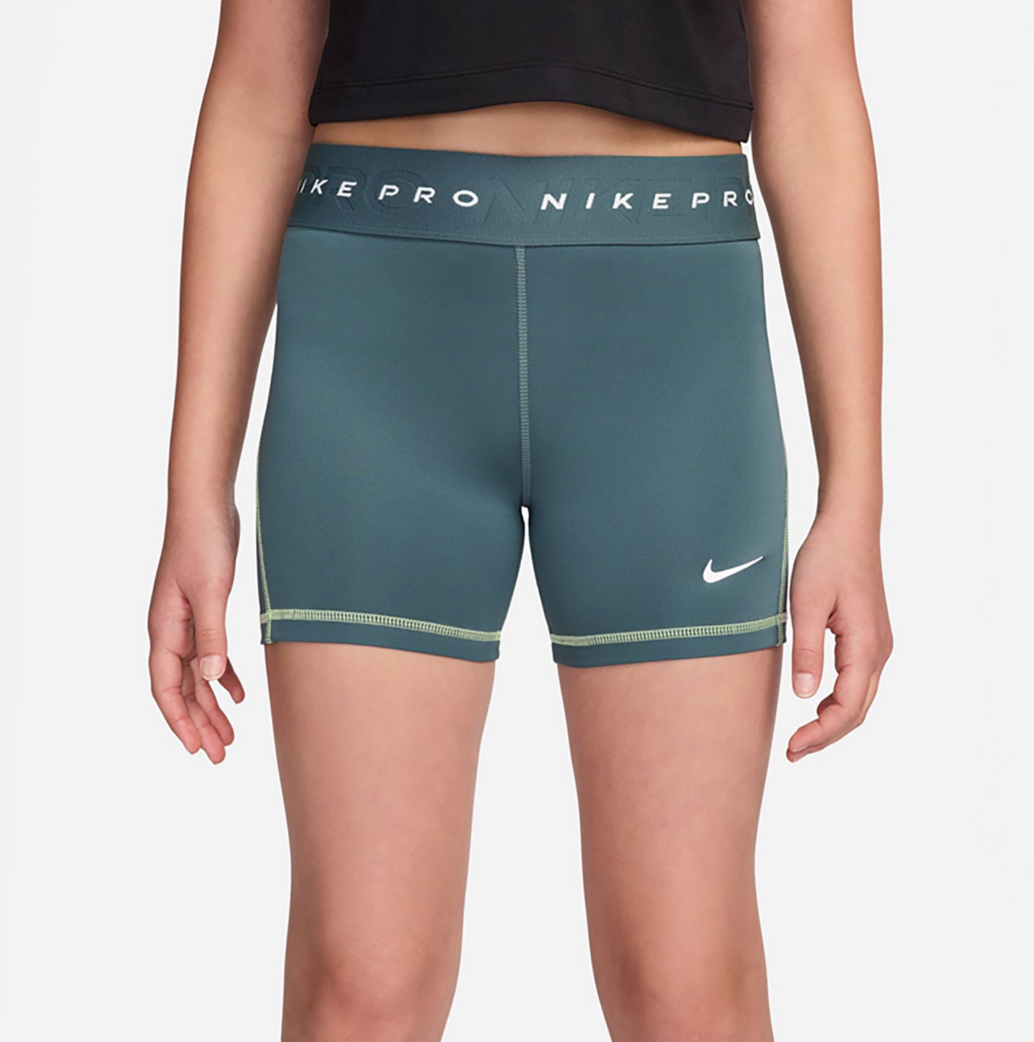 Stay sweat-free while working out in these Nike Girls' Pro Shorts 3 Inches, featuring Dri-FIT moisture-wicking technology. Made of a pleasant-feeling polyester, nylon and Spandex, they wear comfortably, whether at the gym or just around the house.