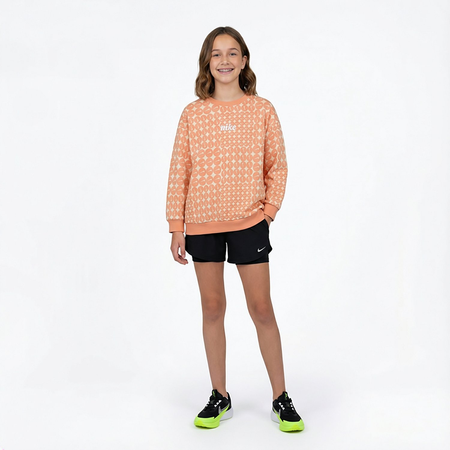 Stay comfortable and deliver modern style with this Nike Girls' Sportswear Club Fleece Oversized Crew Neck Sweatshirt. It is made of 80% cotton and 20% polyester for durable comfort, and the sweatshirt interior features lightweight fleece to help keep you warm in chilly weather. It features a graphic design with Nike Swoosh logos.