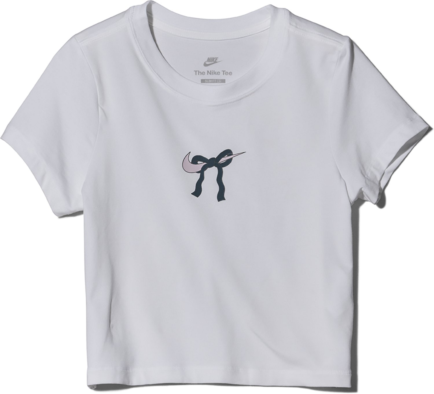 Live in comfort in the Nike Girls' Sportswear Empower T-shirt. It is made of 48% modal, 46% cotton, and 6% spandex. The cropped length provides a streamlined look, and it is slimmer and shorter than the standard fit. The shirt is machine wash safe.