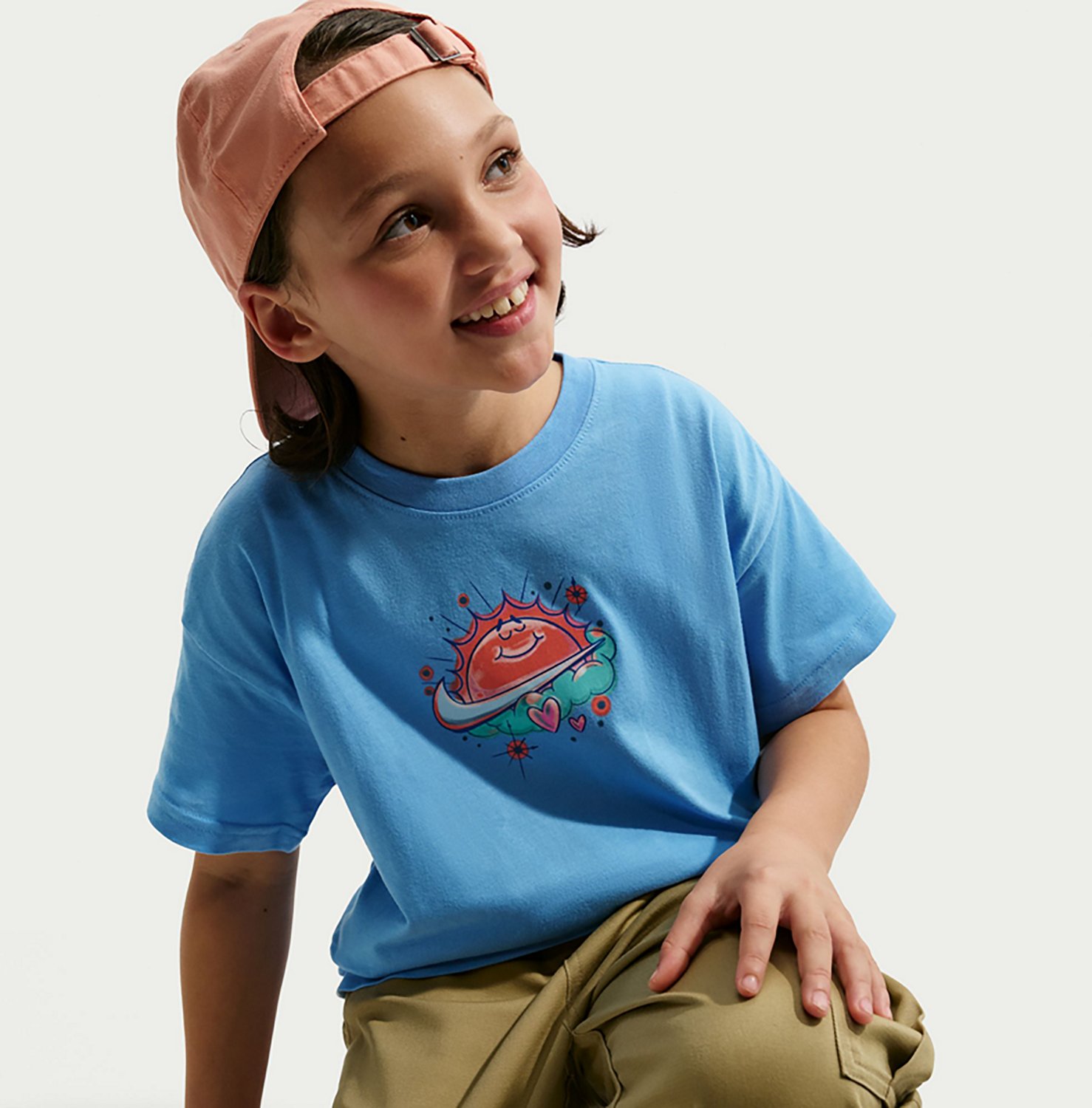 Put your personal style on proud display wearing this Nike Girls' Sportswear OC Boy Airbrush T-Shirt. The fetching graphic on its front can tie any ensemble together and is sure to capture attention.