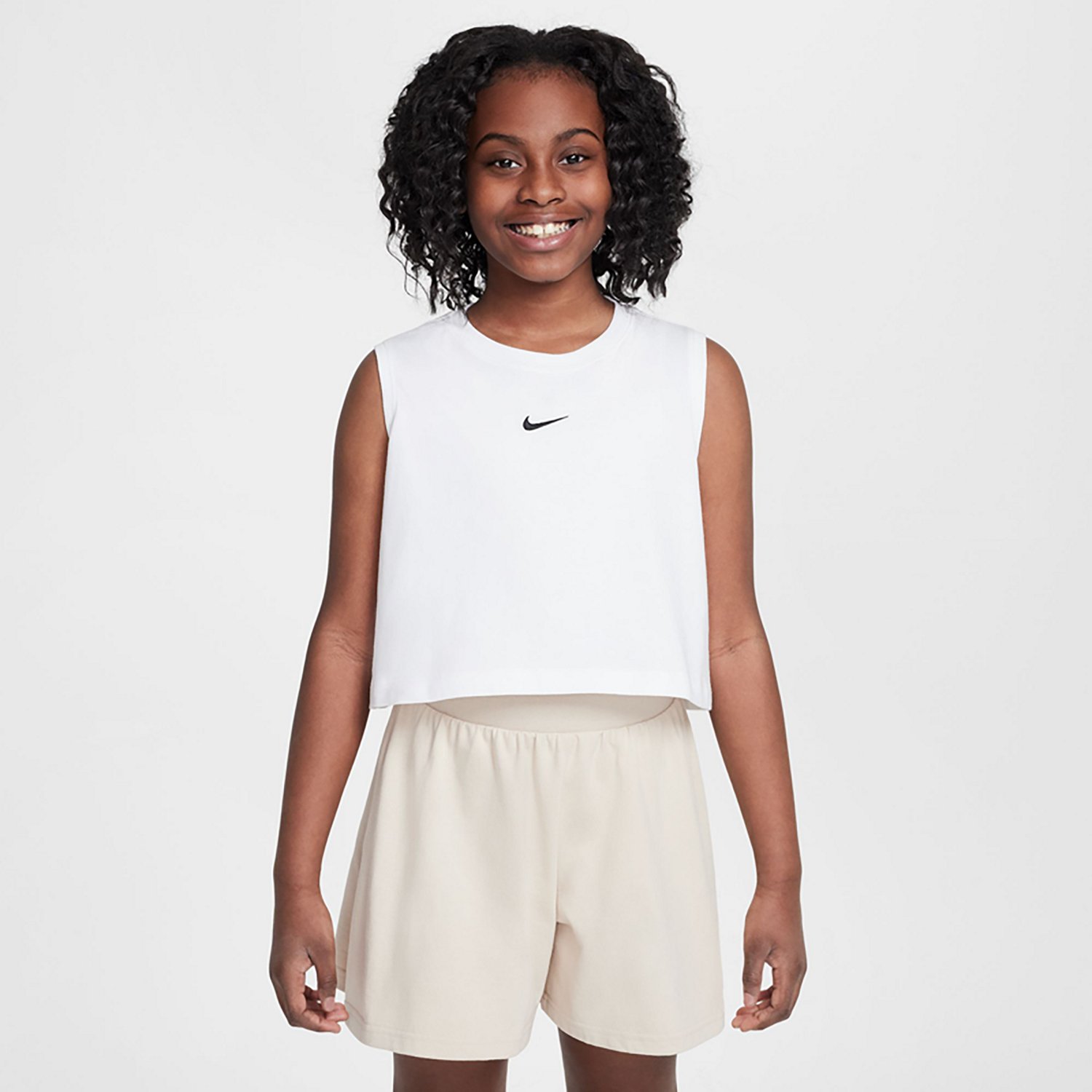 Move comfortably in this Nike Girls' Sportswear Tank Top. This sporty tank top is made of 100% cotton for a soft and comfortable feel, and it features a cropped fit to provide you with plenty of room to move. The Swoosh design trademark adds an athletic feel.