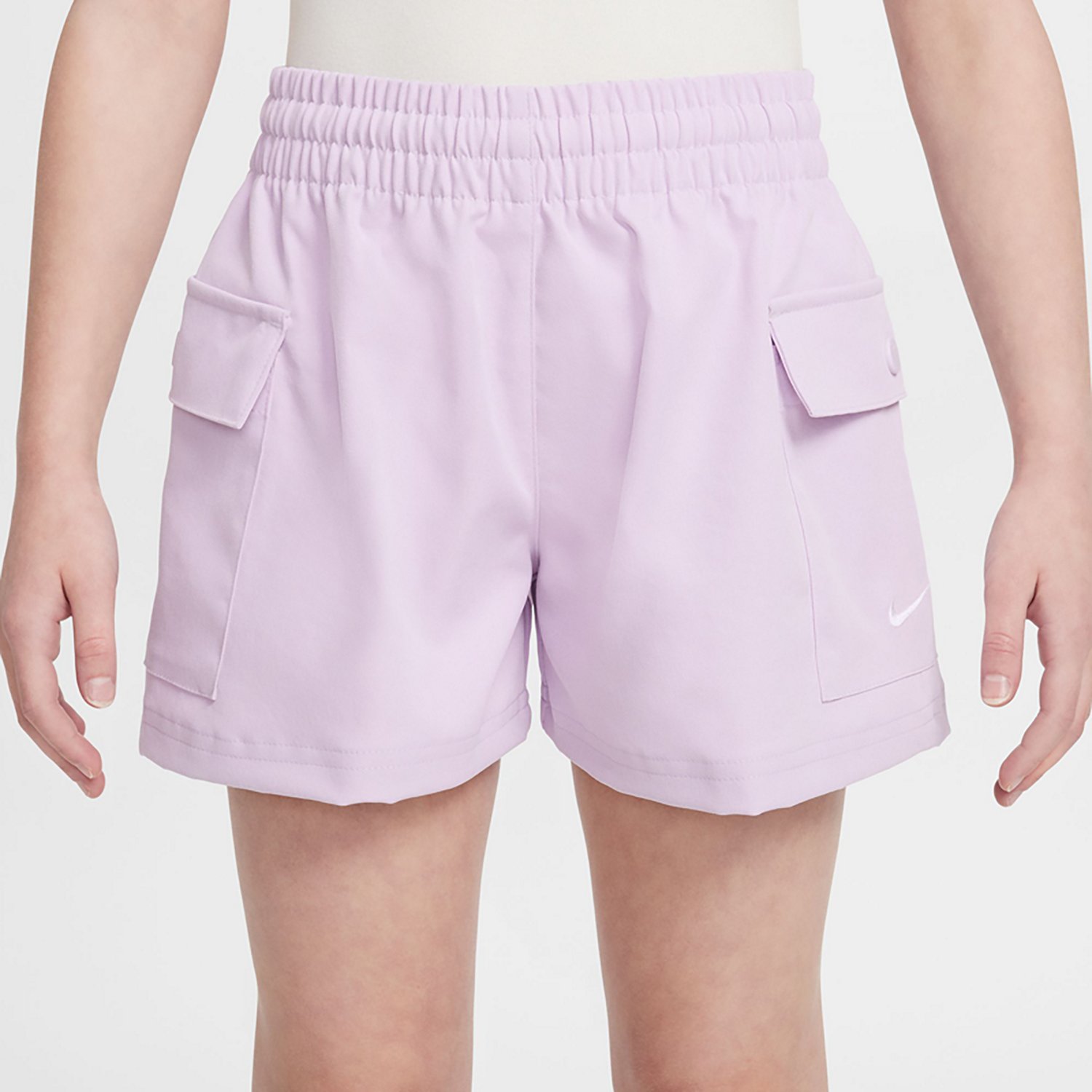 Stay comfortable from school to practice with these Nike Girls' Sportswear Woven Cargo Shorts 3 in. They are made of 100% polyester for a soft, comfortable feel, and they feature cargo pockets with snap-button closures for secure storage.