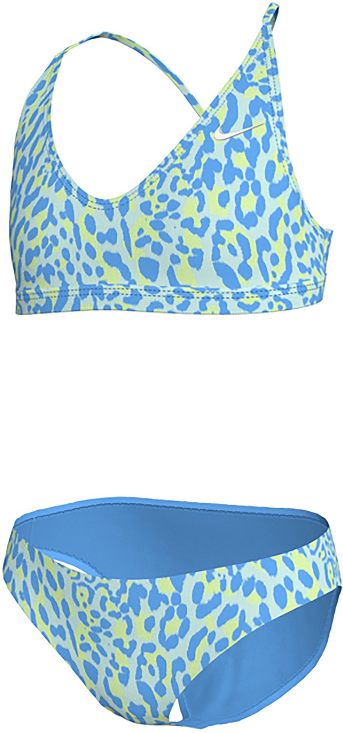 She'll be stylish at the pool and beach with the Nike Girls' Wild Lace Up Bikini Set. This lightweight two-piece swimsuit is made of a stretchy nylon blend that won't weigh her down doing laps or playing in the sand. The polyester liner keeps her covered as she moves, and the lace-up back combined with an electric, colorful print add a stylish look that stays in place.