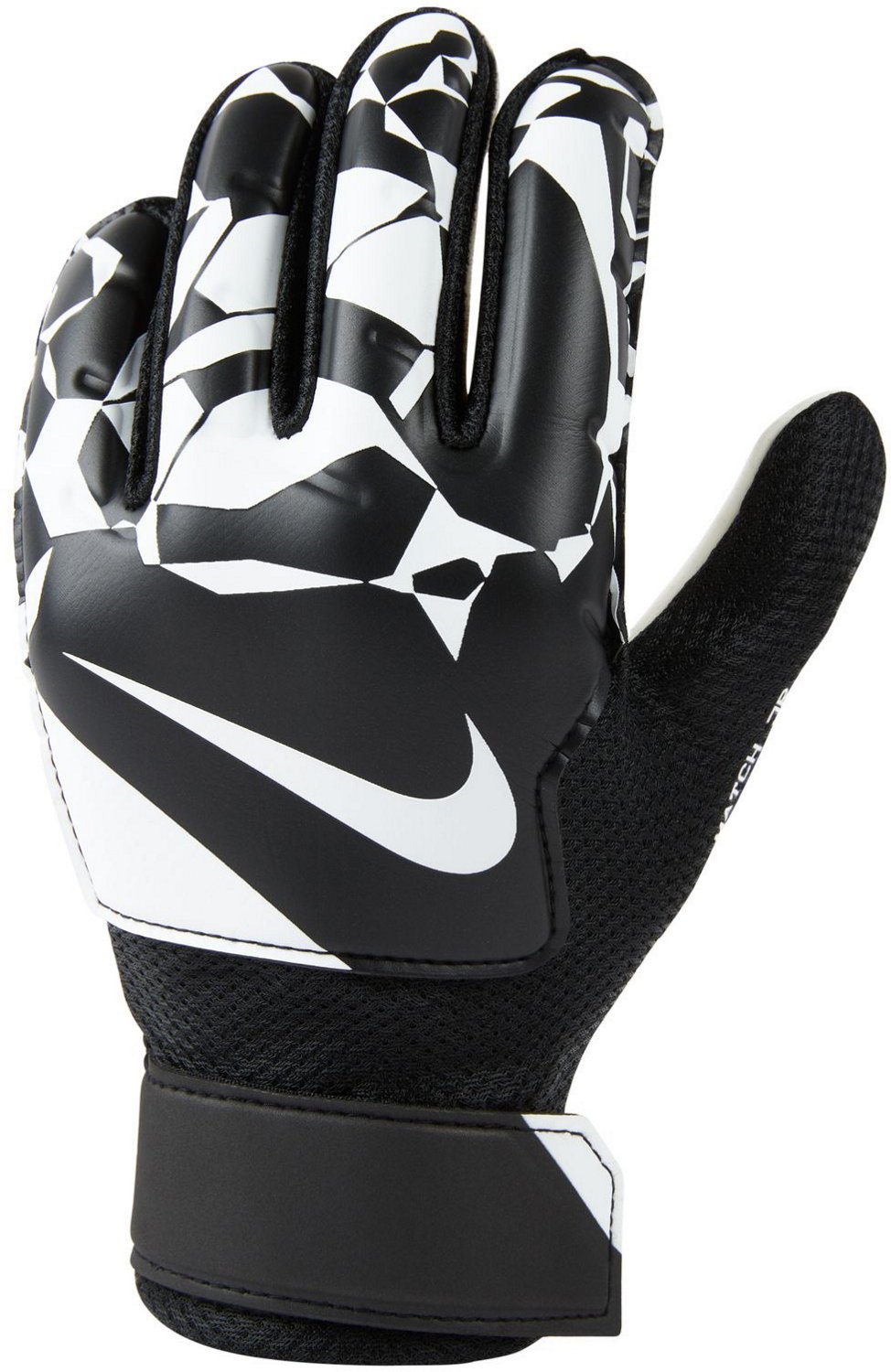 Fearlessly tend the goal with the Nike Juniors' Match Goalie Gloves. These lightweight and durable gloves have foam in the palms to absorb the impact of hard-kicked balls. The smooth surface and mesh panels help you get a firm hold on the ball, while the adjustable wrist strap creates a comfortable fit.