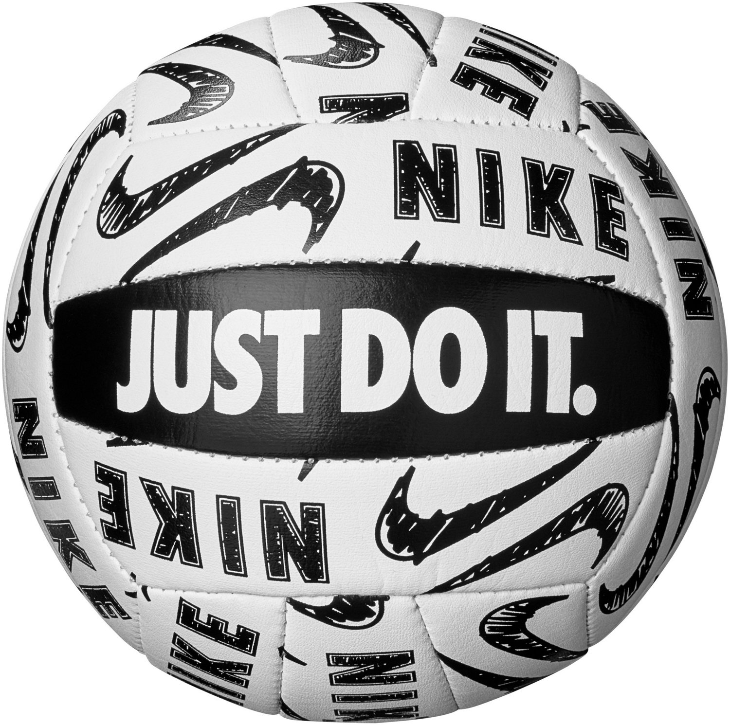 Take your game to the next level with the Nike Just Do It Skills Mini Volleyball. The construction boasts a rubber, synthetic leather, acetate and polyester blend material for durability and a 12-panel design for increased spin. The dimples promote alignment and control, while the lightweight feel is ideal for new players.