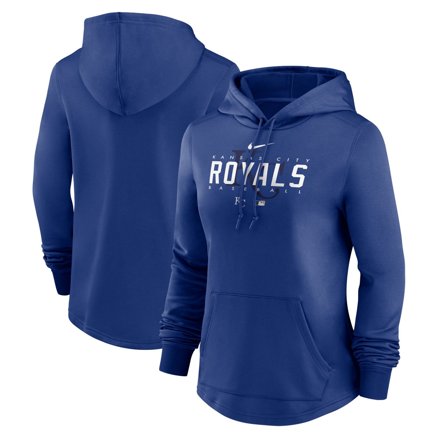 Celebrate your unwavering loyalty to the Kansas City Royals with the Women's Nike Royal Kansas City Royals Authentic Collection Pregame Performance Pullover Hoodie Crafted from soft polyester and spandex this midweight hoodie features a cozy fleece lining for warmth during chilly game days Screen-printed graphics proudly display your Kansas City Royals pride while the scuba hood with drawstring provides added protection from the elements Whether you're cheering from the stands or simply showing your support this hoodie is the perfect way to represent the Kansas City Royals in style