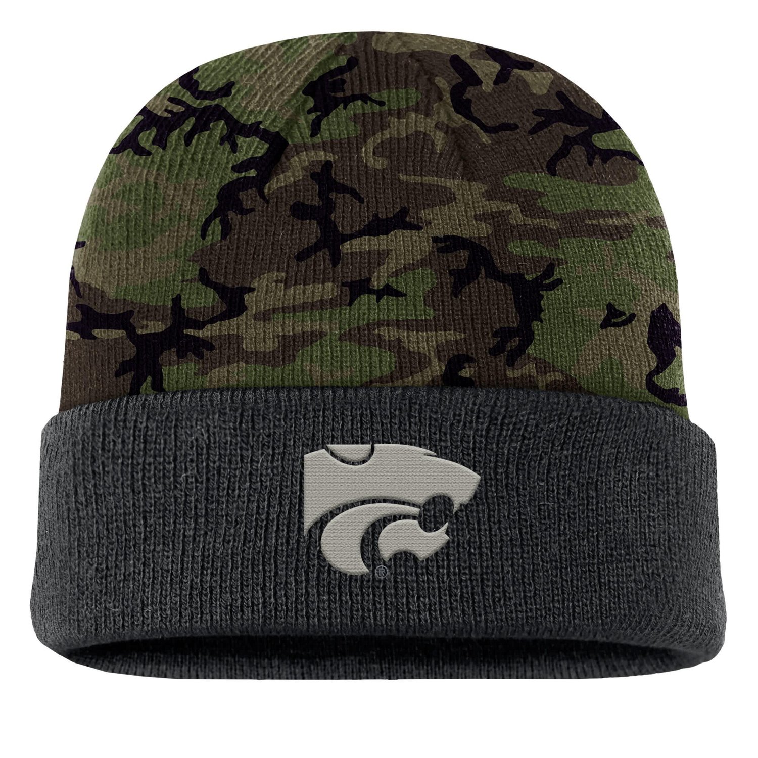 When the temperature drops stay warm with this Kansas State Wildcats Military Appreciation Cuffed Knit Hat This cap features a camo print and an embroidered graphic of your favorite College team Add a striking finish to any Kansas State Wildcats look with this knit hat