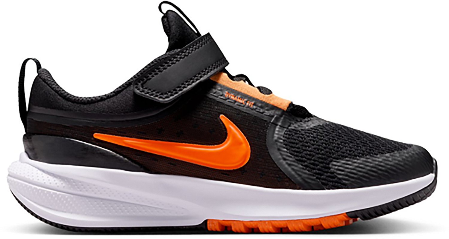 Your little athlete is sure to stay comfortable during play in these Nike Kids’ Star Runner 5 Running Shoes. Mesh and knit uppers feature a lightweight, flexible and breathable design that keeps tiny feet cool, while foam midsoles put a soft, cushioned spring in their step. Dynamic fit bands, adjustable hook-and-loop straps and elastic laces secure snugly, providing a stable feel.