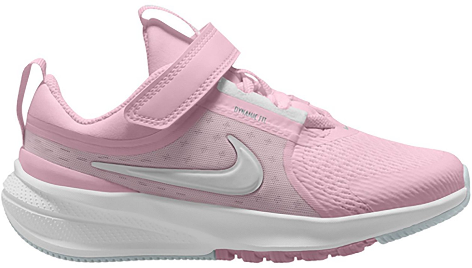 Your little athlete is sure to stay comfortable during play in these Nike Kids’ Star Runner 5 Running Shoes. Mesh and knit uppers feature a lightweight, flexible and breathable design that keeps tiny feet cool, while foam midsoles put a soft, cushioned spring in their step. Dynamic fit bands, adjustable hook-and-loop straps and elastic laces secure snugly, providing a stable feel.