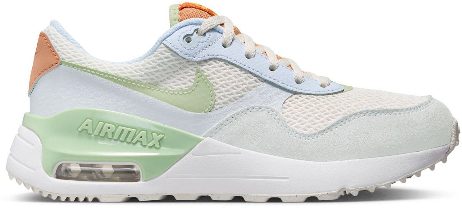 Your child will stay comfortable in the Nike Kids Air Max Systm GS Shoes. These shoes feature leather and textile uppers for durability and visible Air units for lightweight cushioning underfoot. The full-length rubber outsoles provide traction and grip.