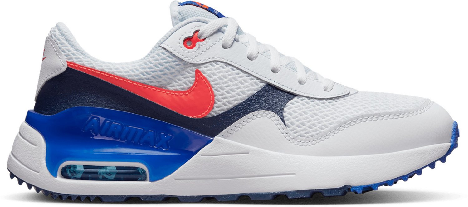 Your child will stay comfortable in the Nike Kids Air Max Systm GS Shoes. These shoes feature leather and textile uppers for durability and visible Air units for lightweight cushioning underfoot. The full-length rubber outsoles provide traction and grip.