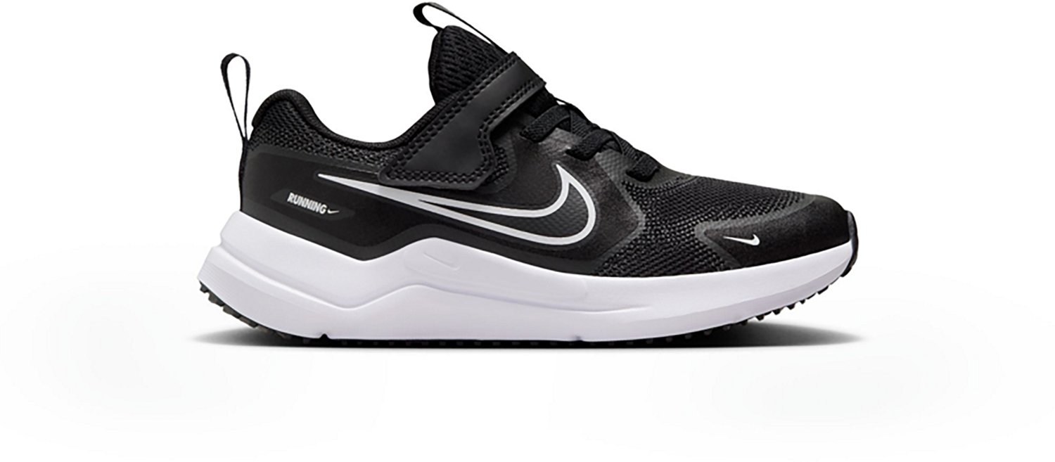Look at their little feet go in the Nike Kids' Cosmic Runner PS Shoes. These kid-friendly shoes have mesh uppers and foam insoles to keep them comfortable all day, while the rubber outsoles help them keep their footing as they play. Elastic laces, pull tabs and hook-and-loop straps help your little ones put their shoes on by themselves (or with quick help from you).