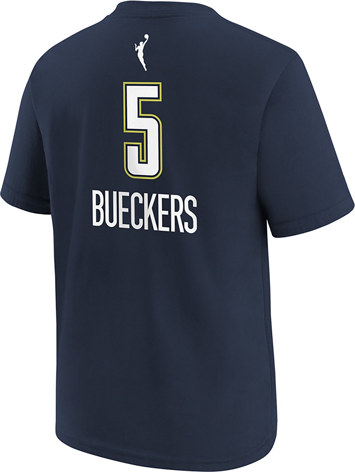 Dallas Wings' Paige Bueckers' name and number, 5, are screen printed on the back