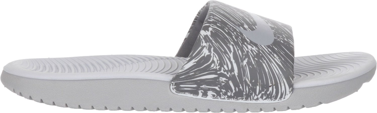 Keep your feet comfortable after the game by sliding them into the Nike Kids' Kawa Print Slides, which have Solarsoft foam footbeds for a cushioned feel with each step. The soft synthetic straps keep your feet securely in place, and the foam outsoles provide long-lasting use.