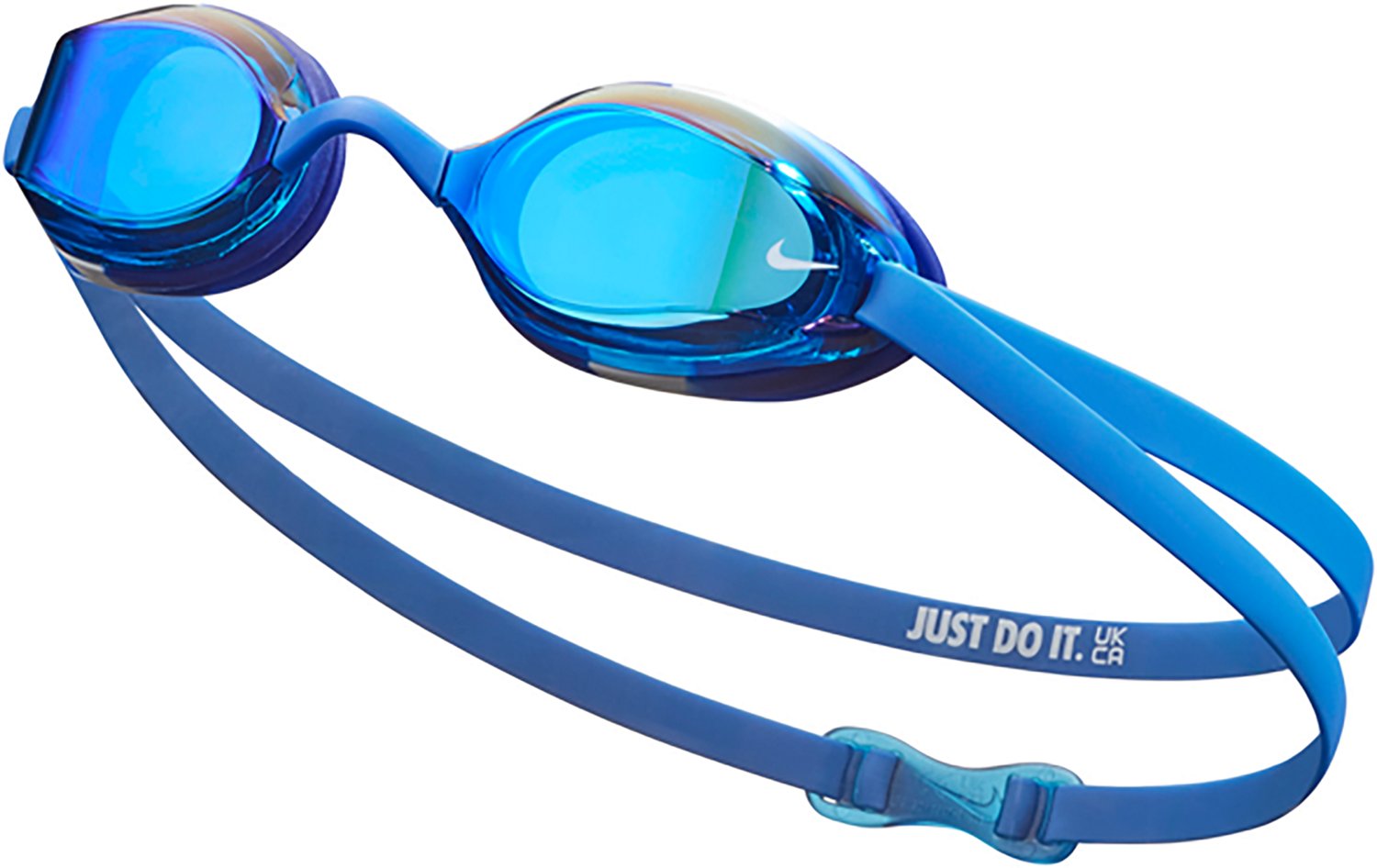 Lap all of your opponents in the Nike Kids’ Legacy Mirror Swim Goggles. The mirrored coating helps reduce glare from the sun’s rays, and the swift track nose bridge system helps you adjust the fit.