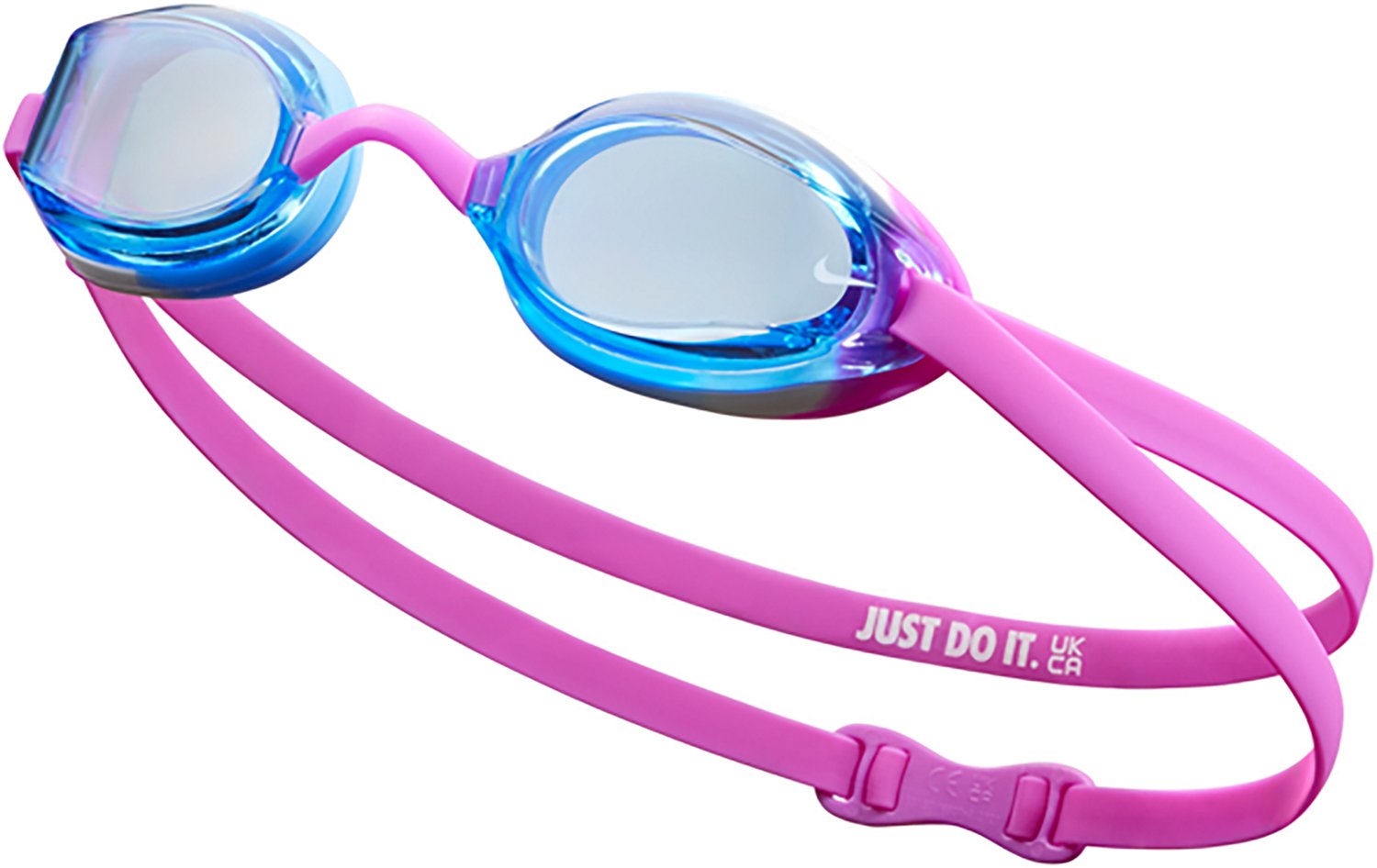 Lap all of your opponents in the Nike Kids’ Legacy Mirror Swim Goggles. The mirrored coating helps reduce glare from the sun’s rays, and the swift track nose bridge system helps you adjust the fit.