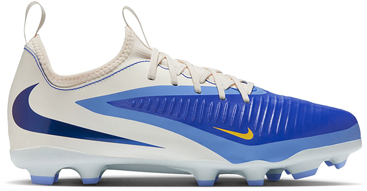 Have your little one playing their best game in the Nike Kids' Phantom 360 Academy Soccer Cleats. Their upper is made of soft material for a comfortable experience. The integrated texture covers the striking area of the cleat, allowing clean boot-to-ball kicks, and their molded plastic studs on the outsole help you make quick cuts. The cushioned insole keeps them in the game for longer.