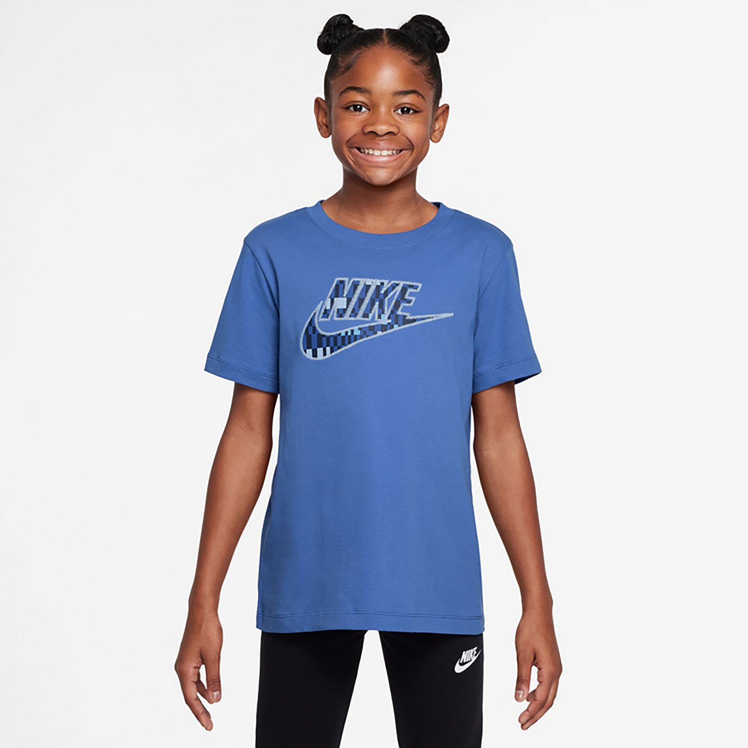 Reach for the Nike Kids' Sportswear Club Futura T-shirt and head out to play with friends. This T-shirt is made of 100% cotton to offer a lightweight feel and lasting comfort, and the chest displays a brand graphic for all to see.