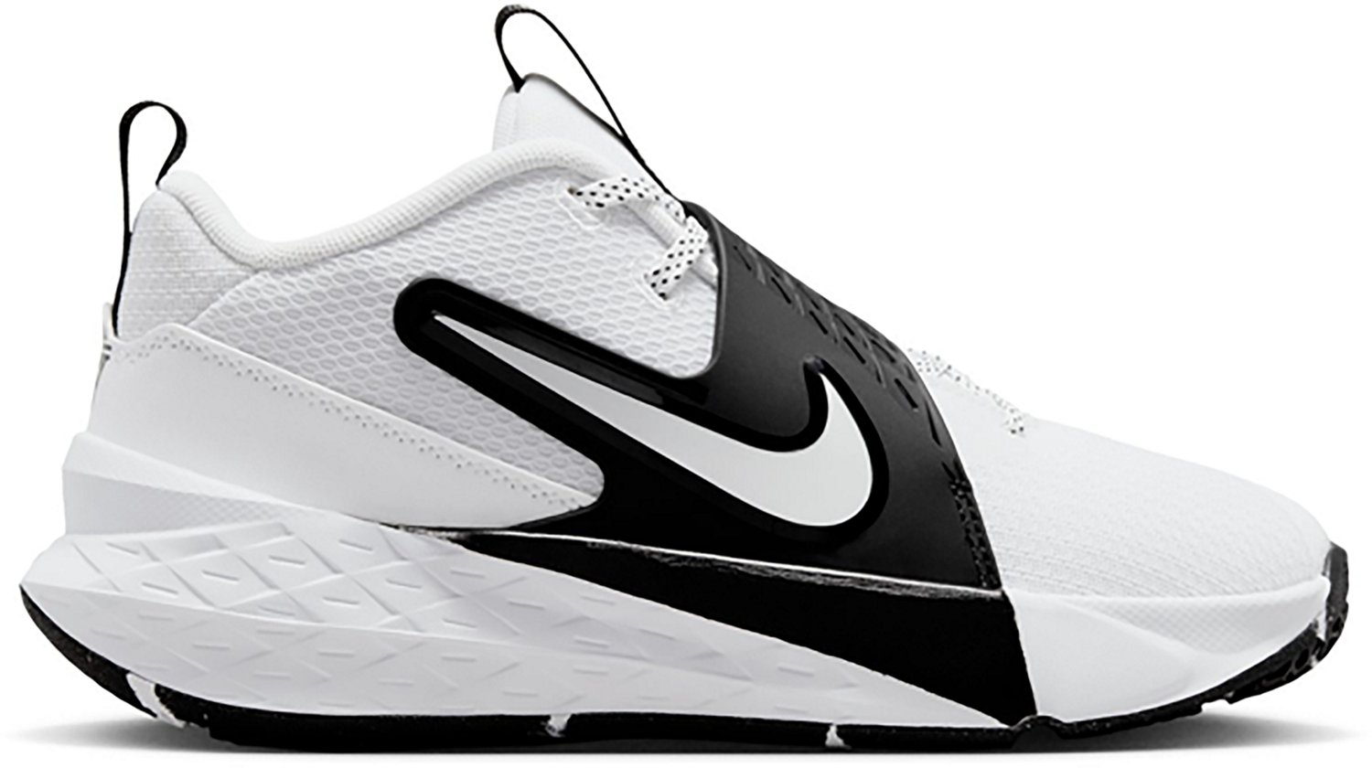 Let your little one run with the Nike Kids' Team Hustle D 12 Basketball Shoes. Their breathable mesh upper helps keep feet from overheating. The soft foam in the midsole cushions every step and jump they take, and their flexible, full-length rubber outsole offers durability and grip. The stretchy elastic laces pair with a hook-and-loop strap to help give a secure, contained fit.