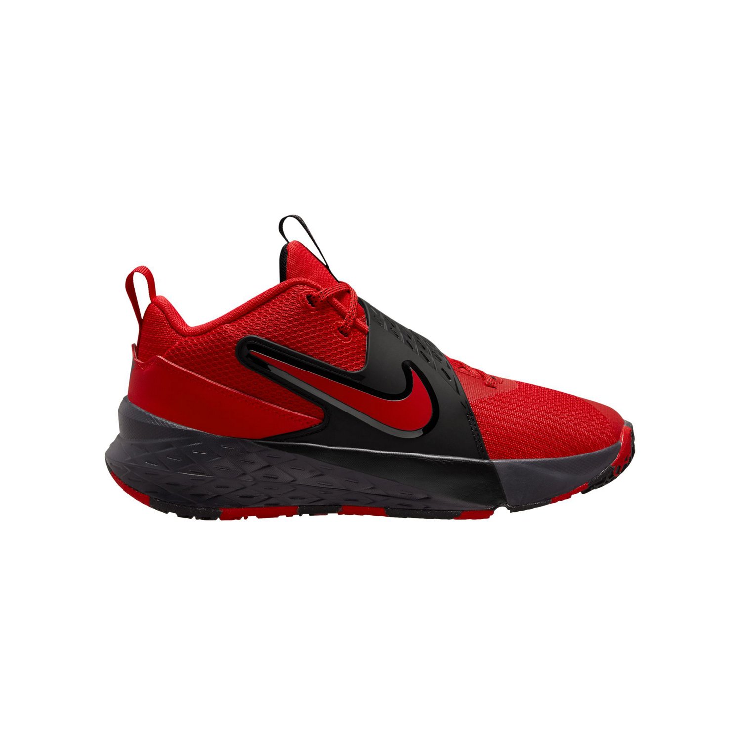 Let your little one run with the Nike Kids' Team Hustle D 12 Basketball Shoes. Their breathable mesh upper helps keep feet from overheating. The soft foam in the midsole cushions every step and jump they take, and their flexible, full-length rubber outsole offers durability and grip. The stretchy elastic laces pair with a hook-and-loop strap to help give a secure, contained fit.
