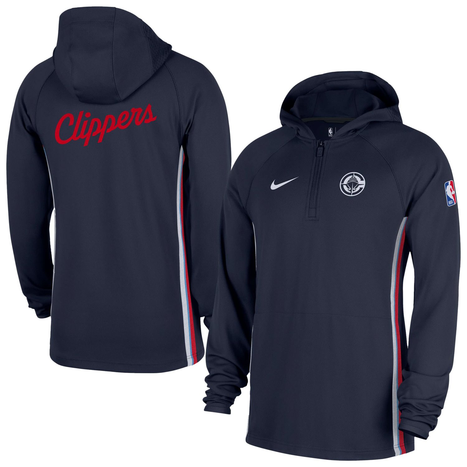 Rep your LA Clippers with this Authentic On Court Zone Quarter-Zip Dri-FIT Hoodie Jacket from Nike Featuring Dri-FIT technology that wicks away moisture this midweight pullover is perfect for moderate temperatures keeping you comfortable whether you're on the court or cheering from the stands The raglan sleeves offer greater freedom of movement and the front pouch pocket provides convenient hands-free storage