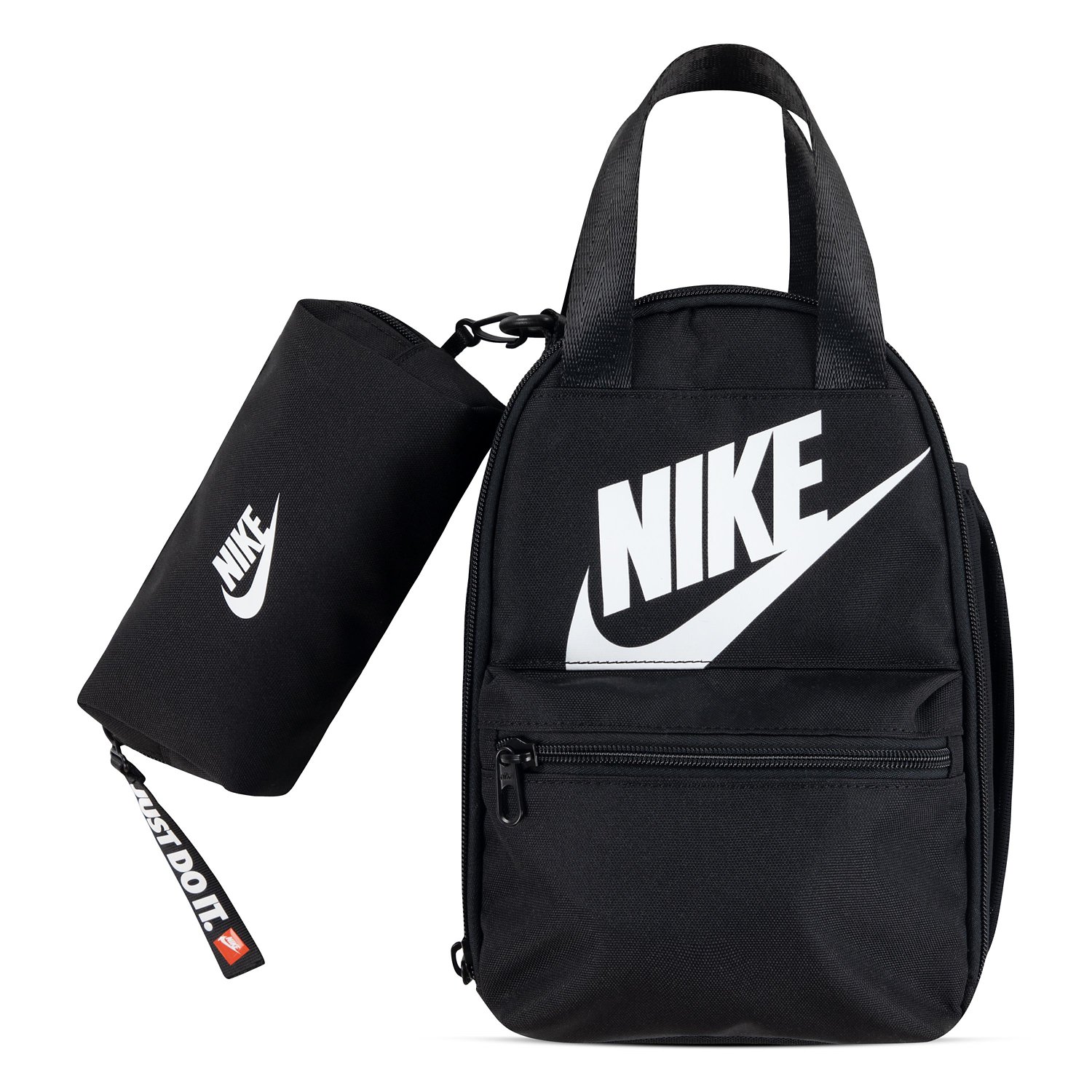 Keep your items secure and your lunch on-hand with the Nike Lunch Tote with Pencil Holder. Made with polyester fabric and a PU coating for durability and easy cleaning, this lunch tote comes with an attached pencil bag to make it easy to carry your essentials with you.